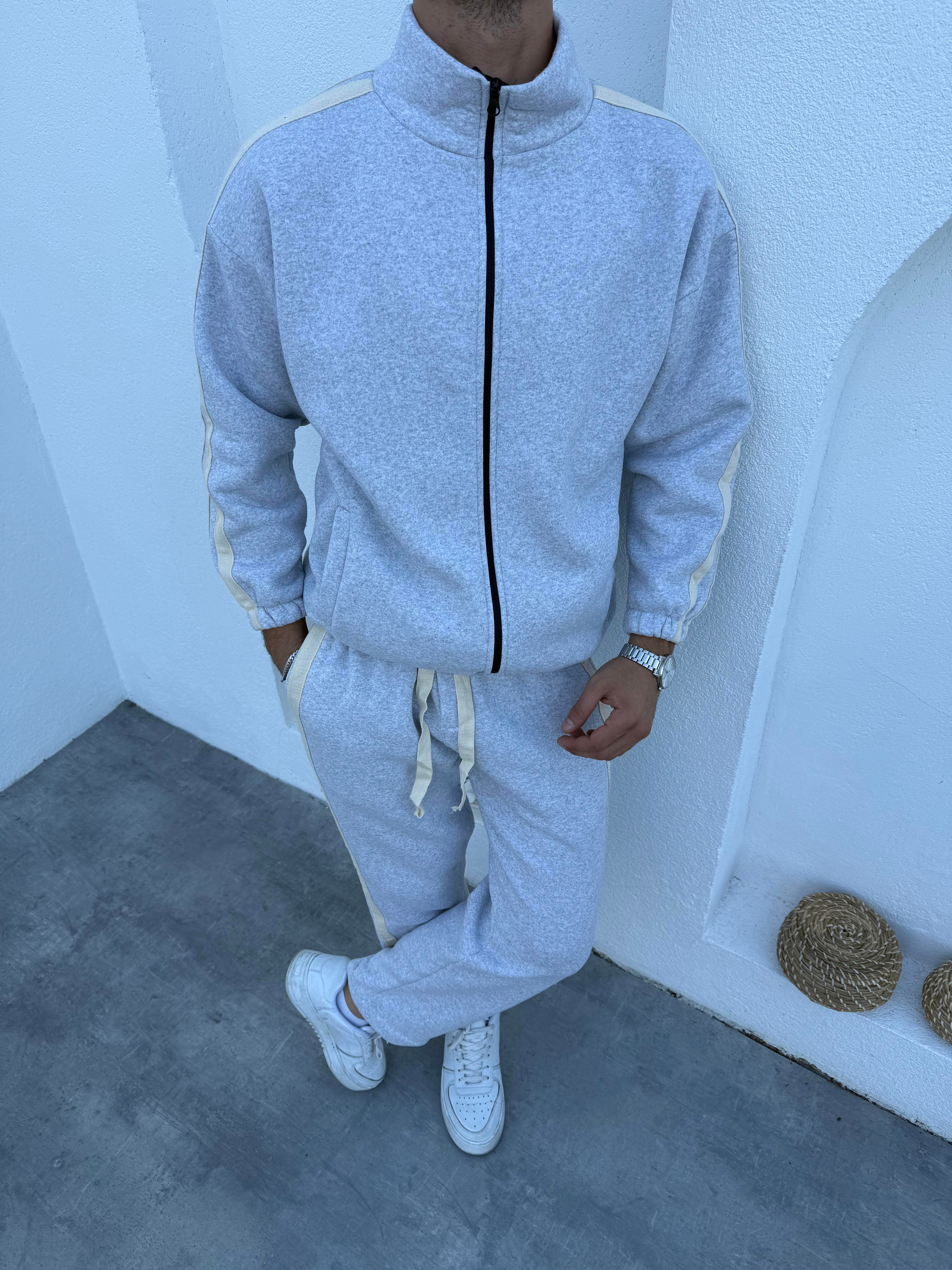 3 İplik Şardonlu Şerit Detaylı Takım Gri
