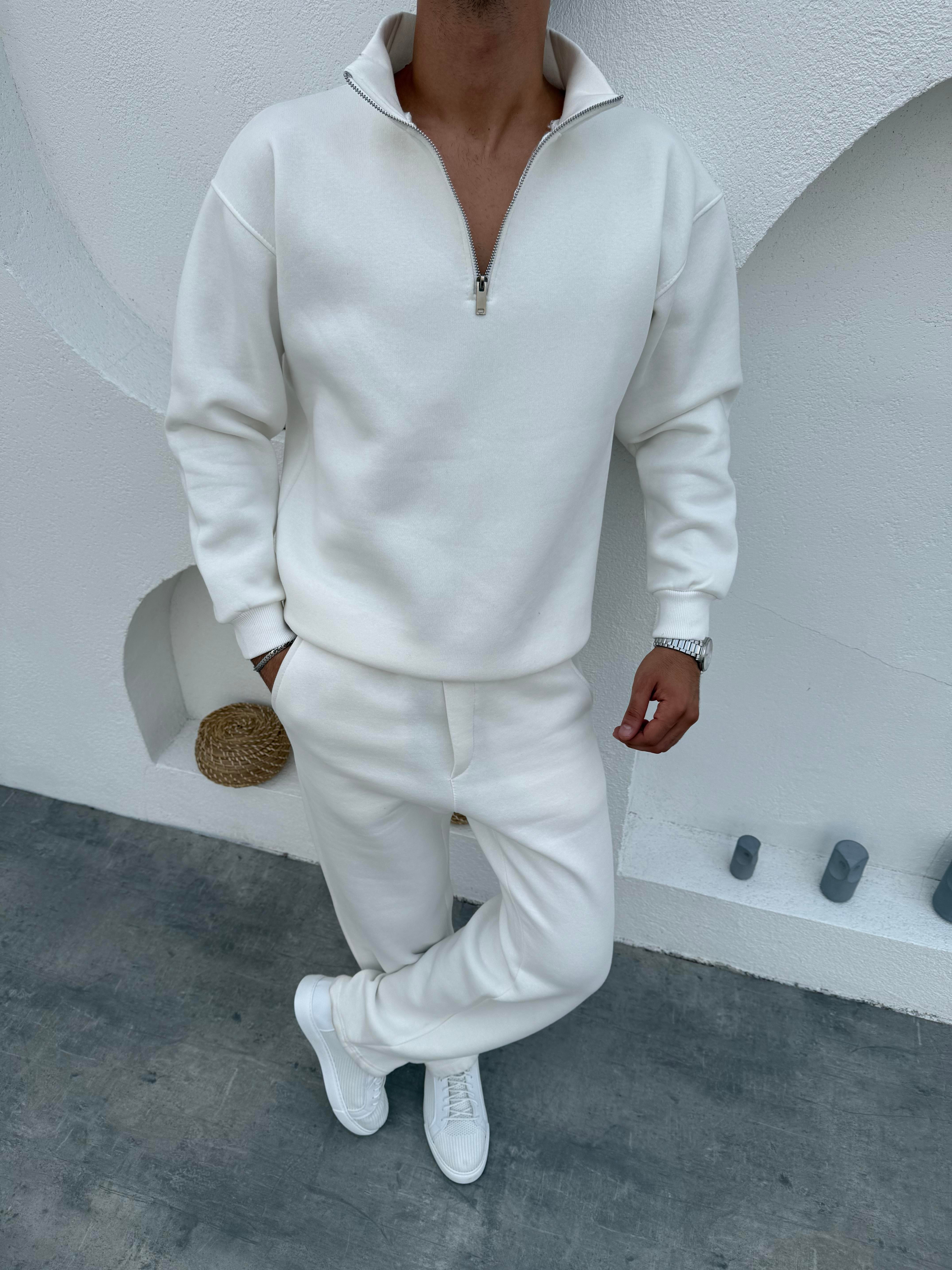 3 İplik Yarım Fermuar-Baggy Eşorfman Takım Beyaz