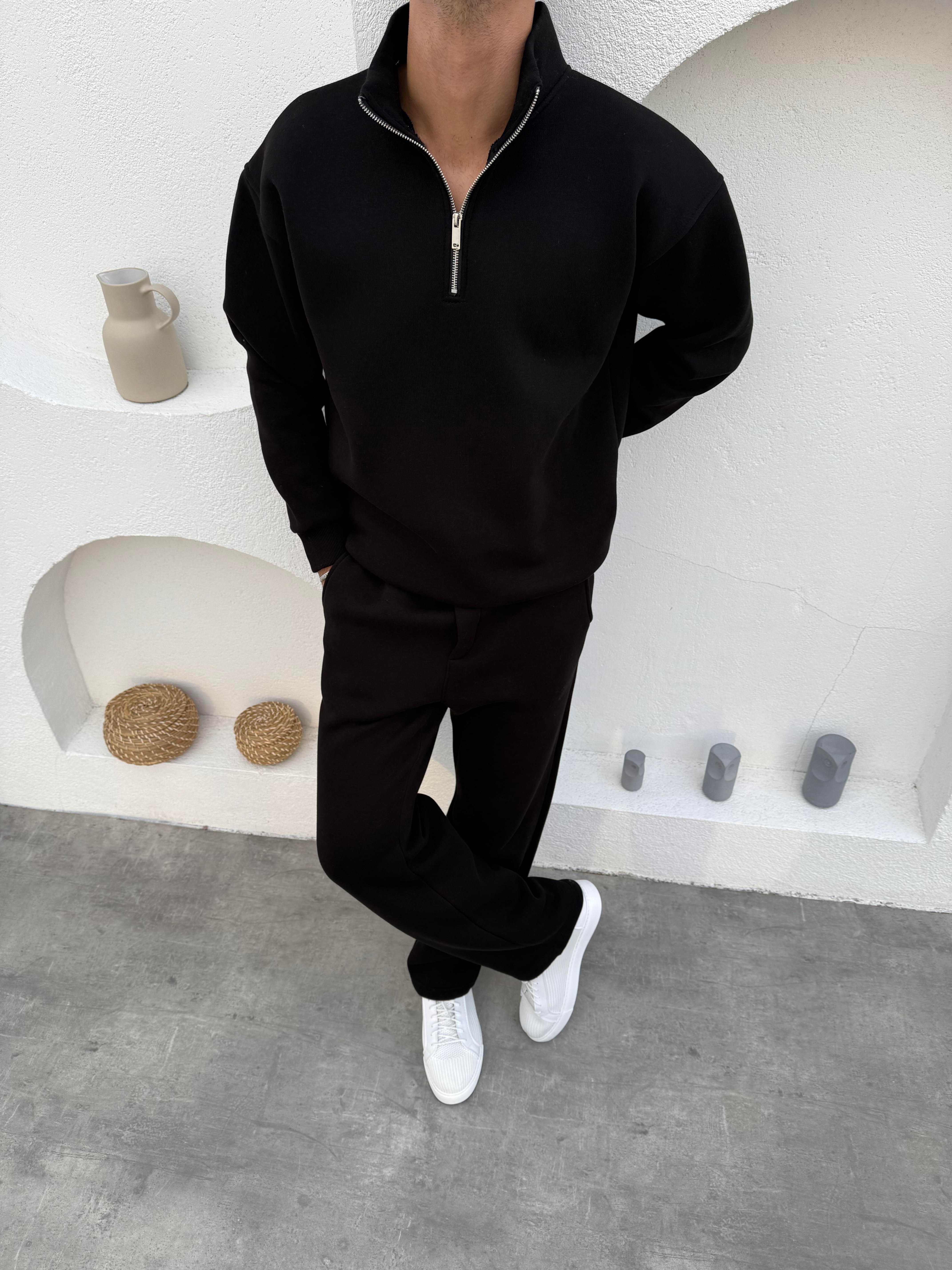 3 İplik Yarım Fermuar-Baggy Eşorfman Takım Siyah