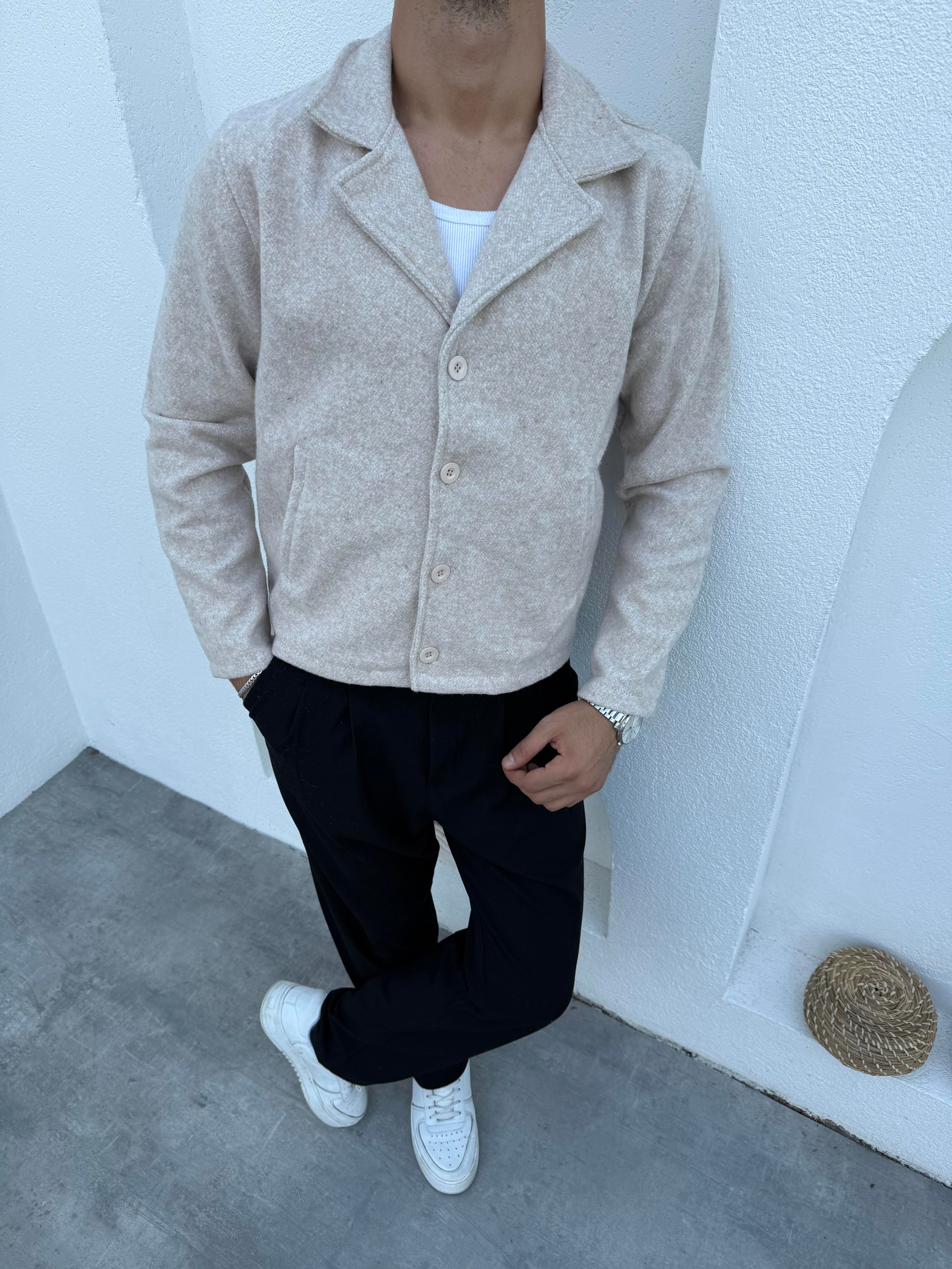 Crop Düğmeli Kaşe Ceket Bej