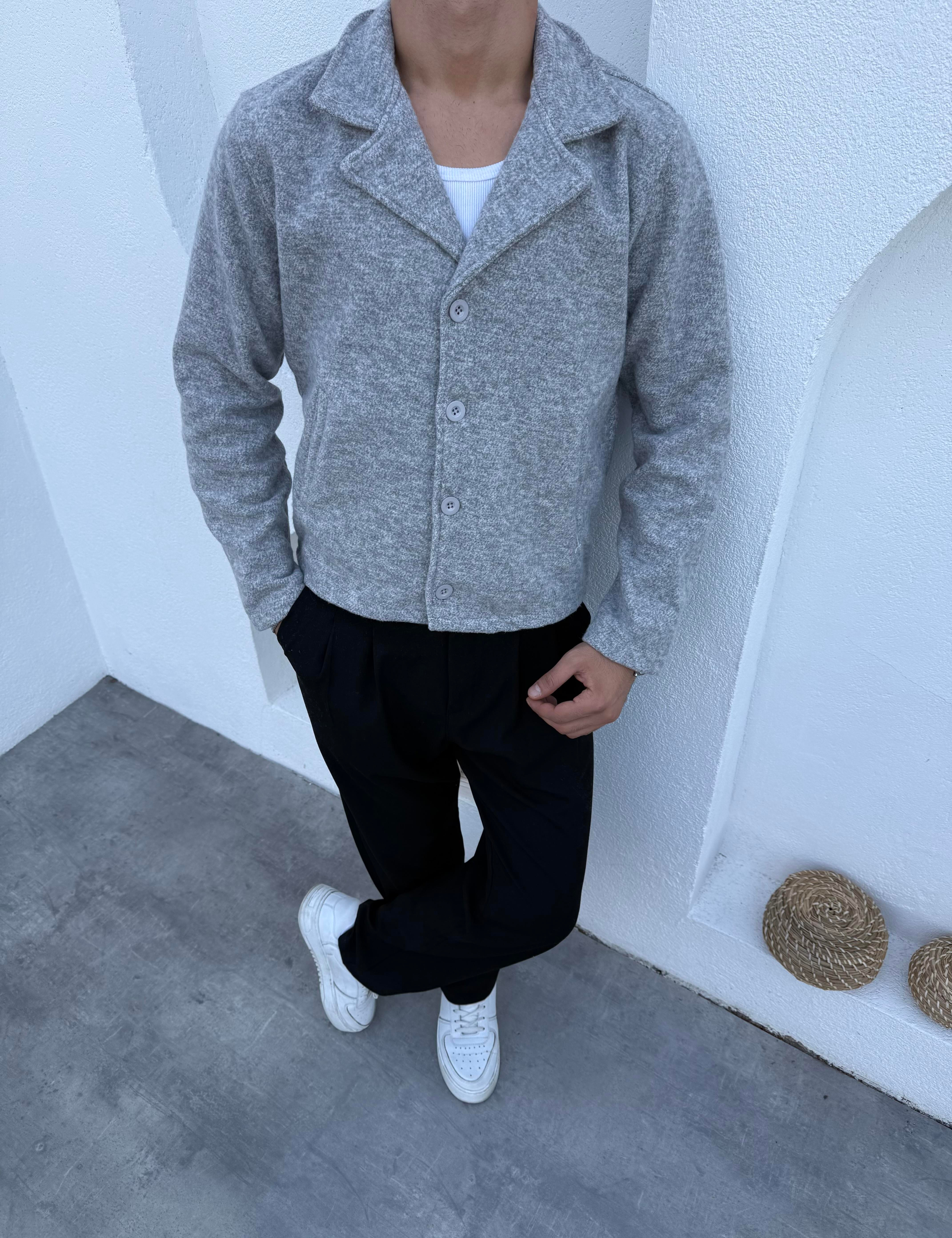 Crop Düğmeli Kaşe Ceket Gri (FM19520)
