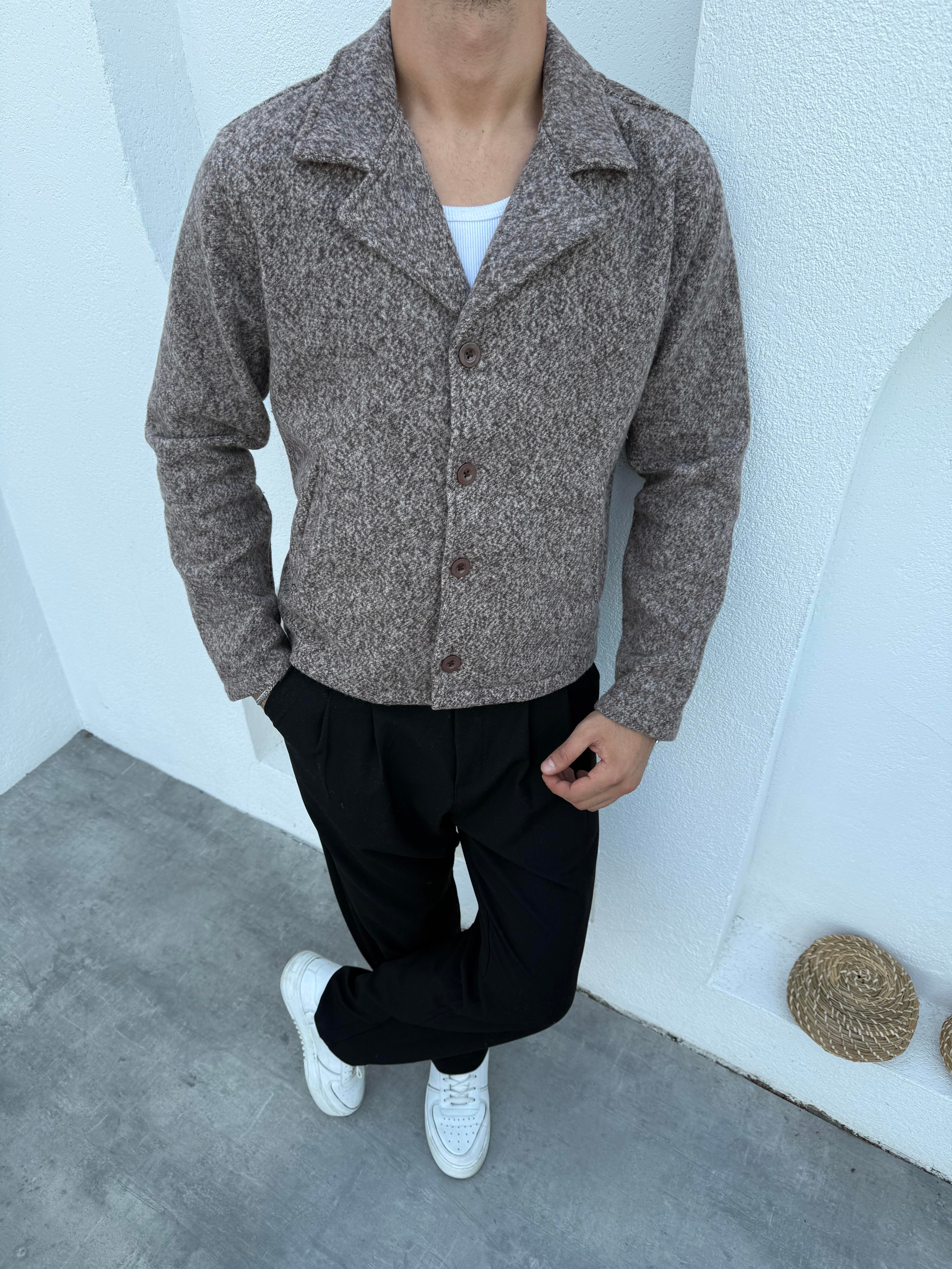 Crop Düğmeli Kaşe Ceket Kahve (FM19520)