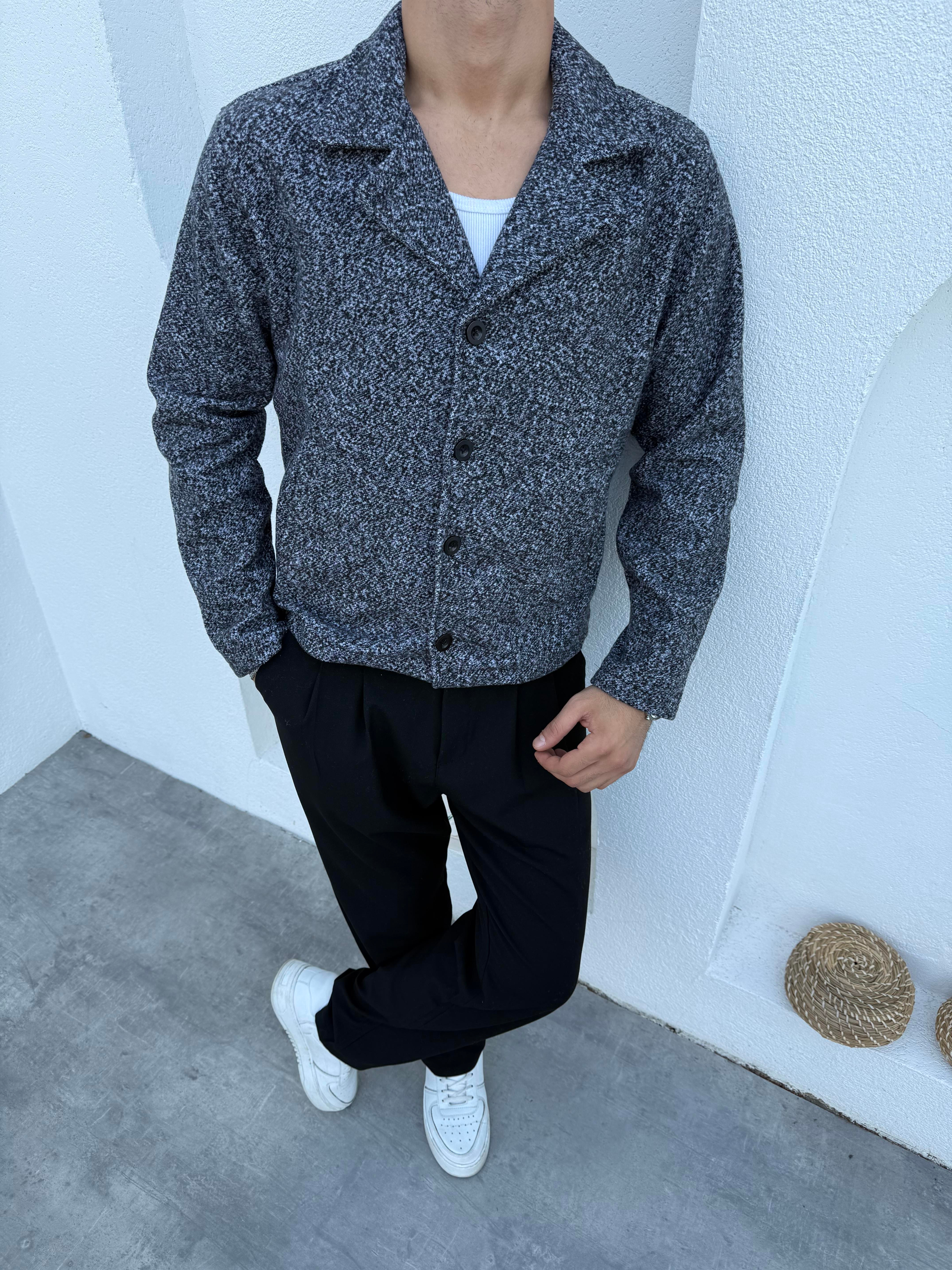 Crop Düğmeli Kaşe Ceket Siyah