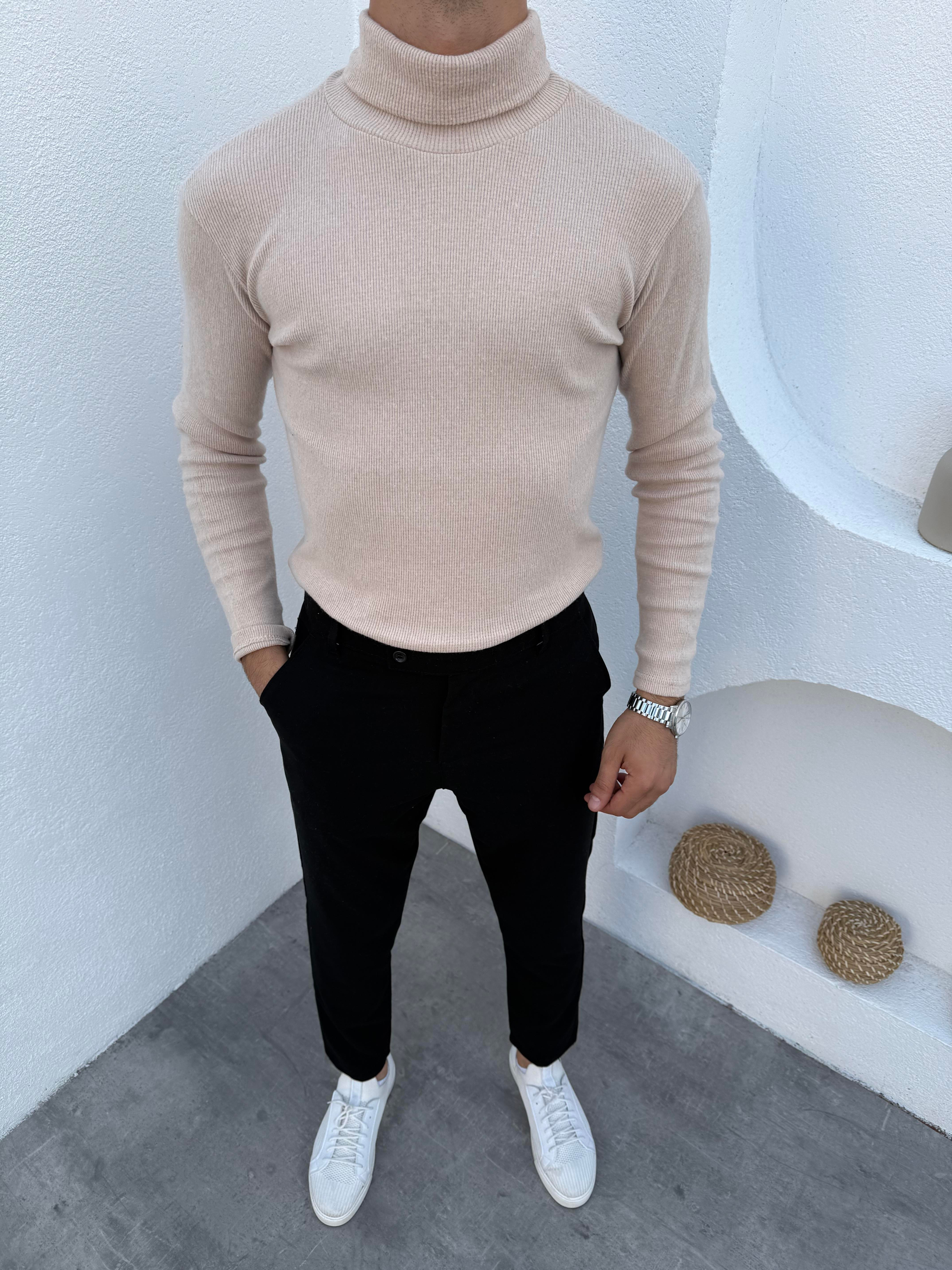 Dilli Gramajlı Pantolon ve Balıkçı Triko Takım Bej