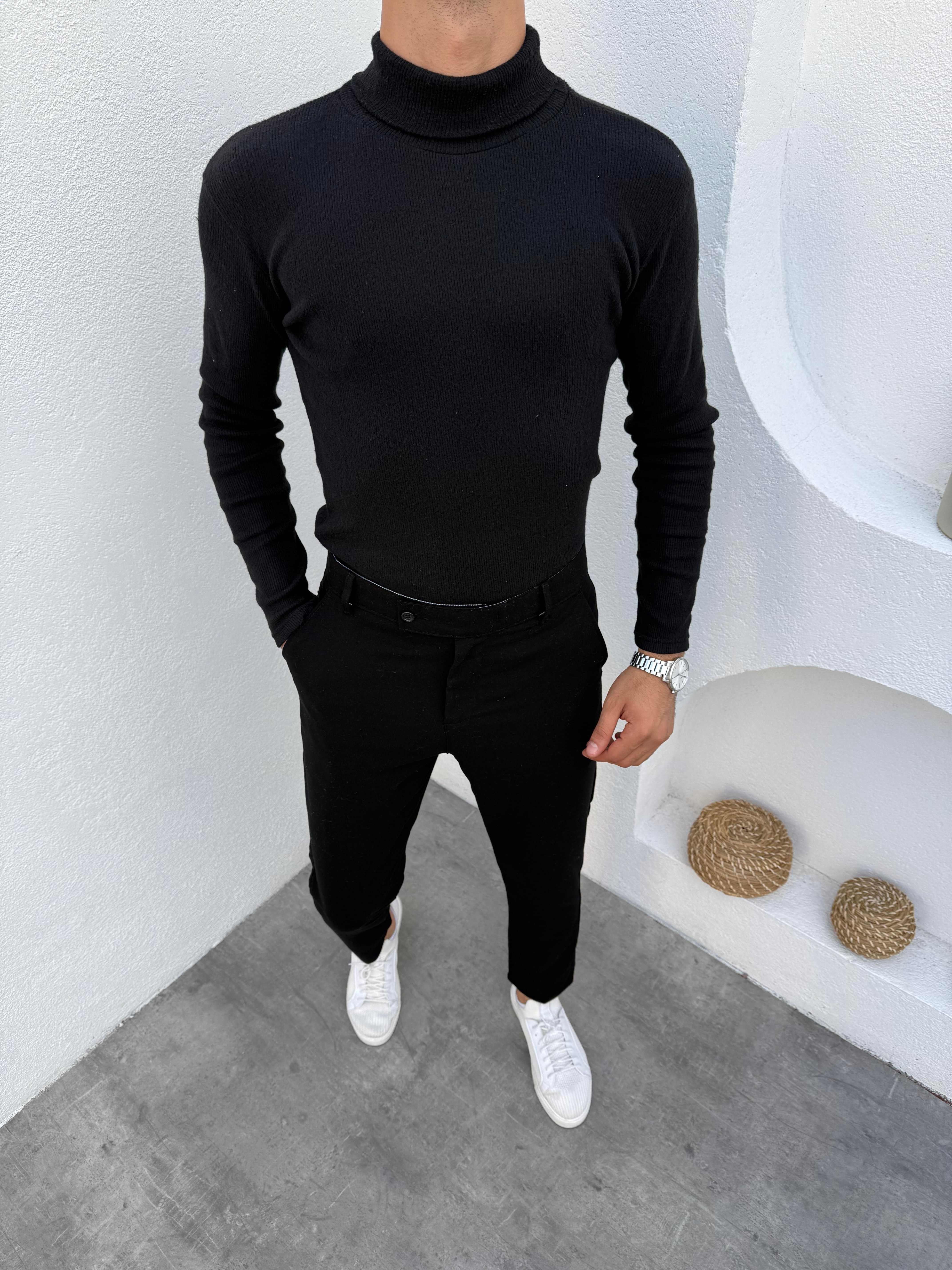 Dilli Gramajlı Pantolon ve Balıkçı Triko Takım Siyah
