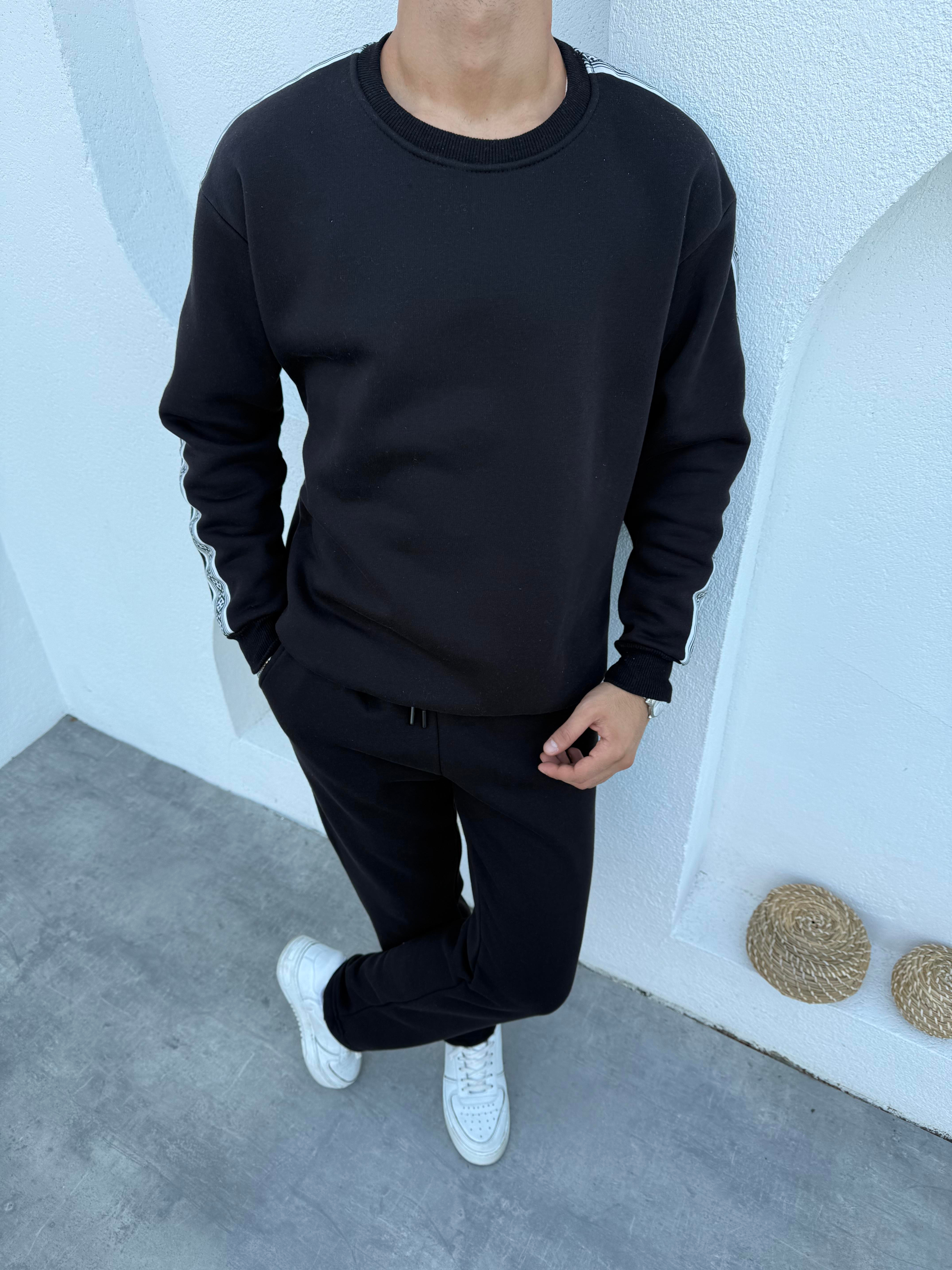 Etnik Desen Şeritli Takım Siyah (FM37150)