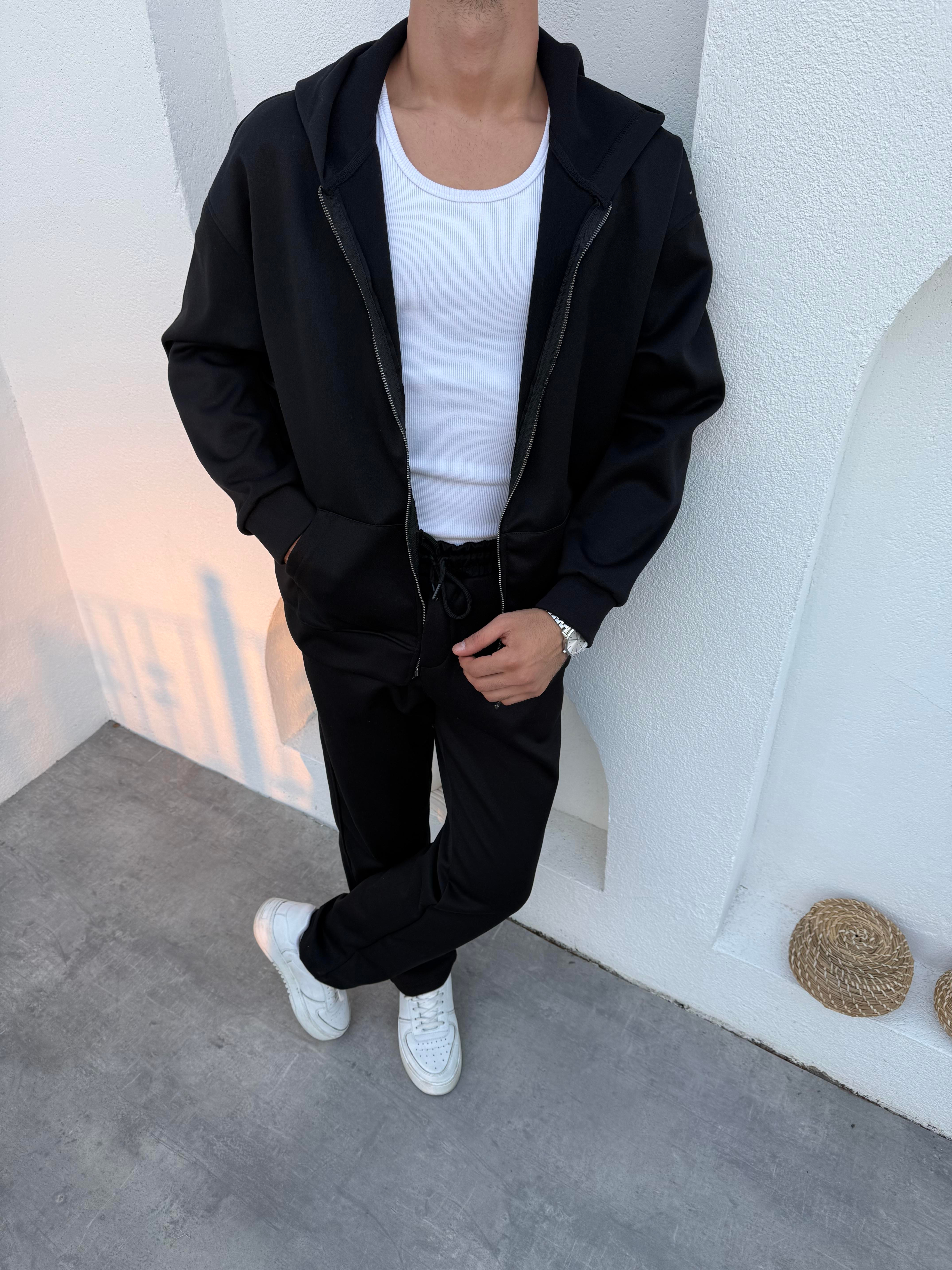 Pamuklu Kapüşonlu Kaşe Takım Siyah (FM01629)