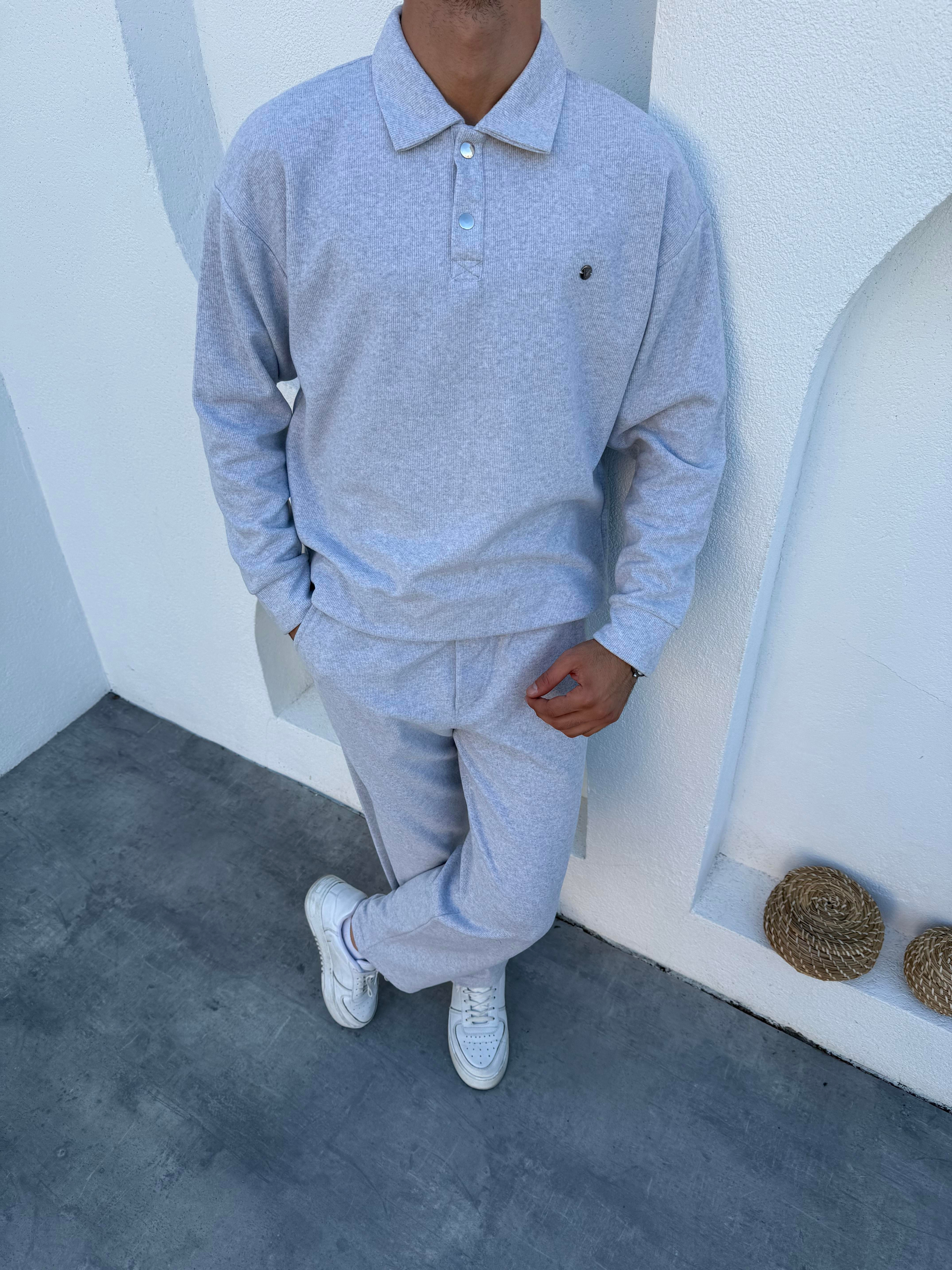 Polo Yaka Oversize Takım Gri
