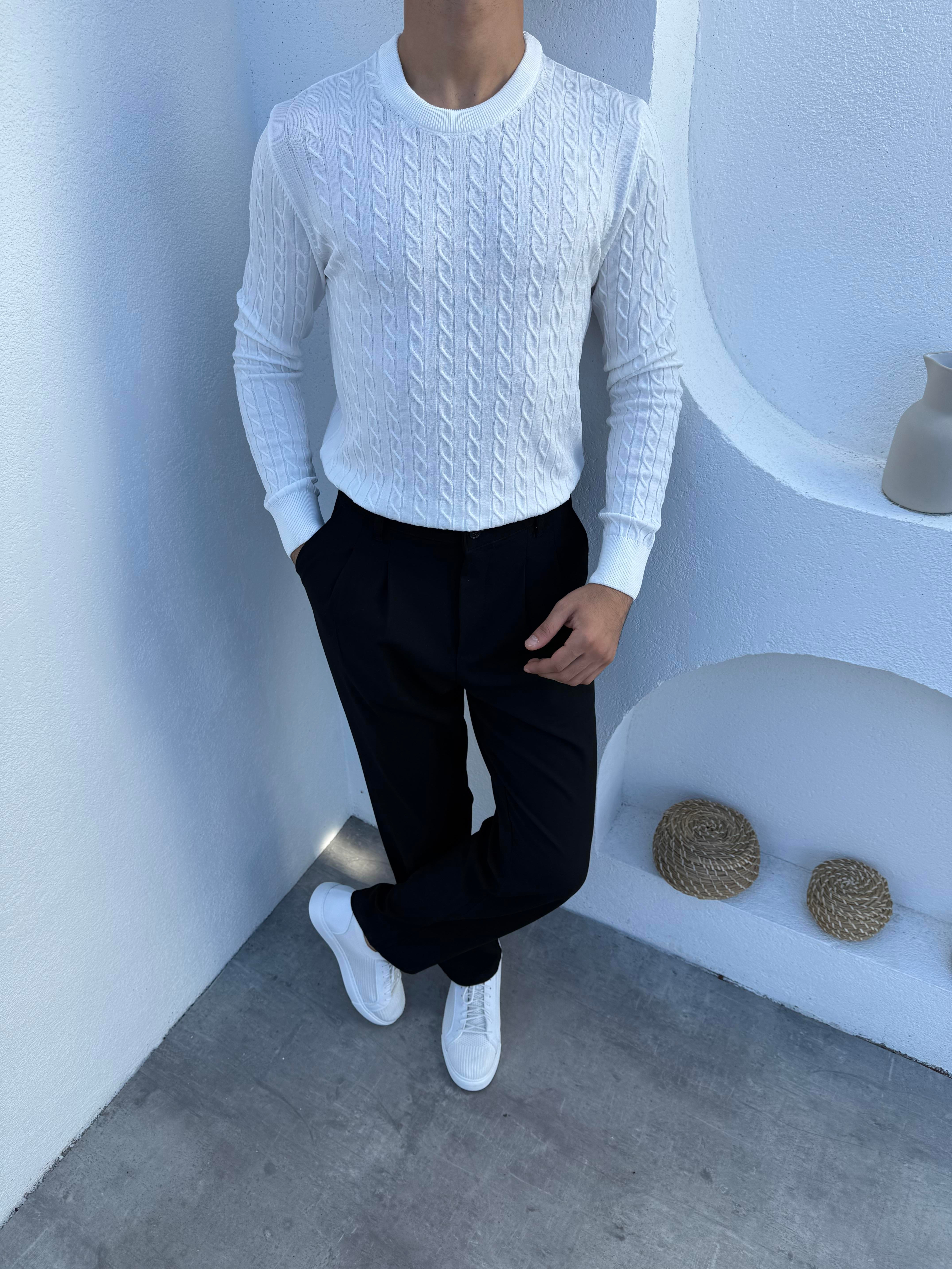 Saç Örgü Pamuklu Likralı Triko Beyaz