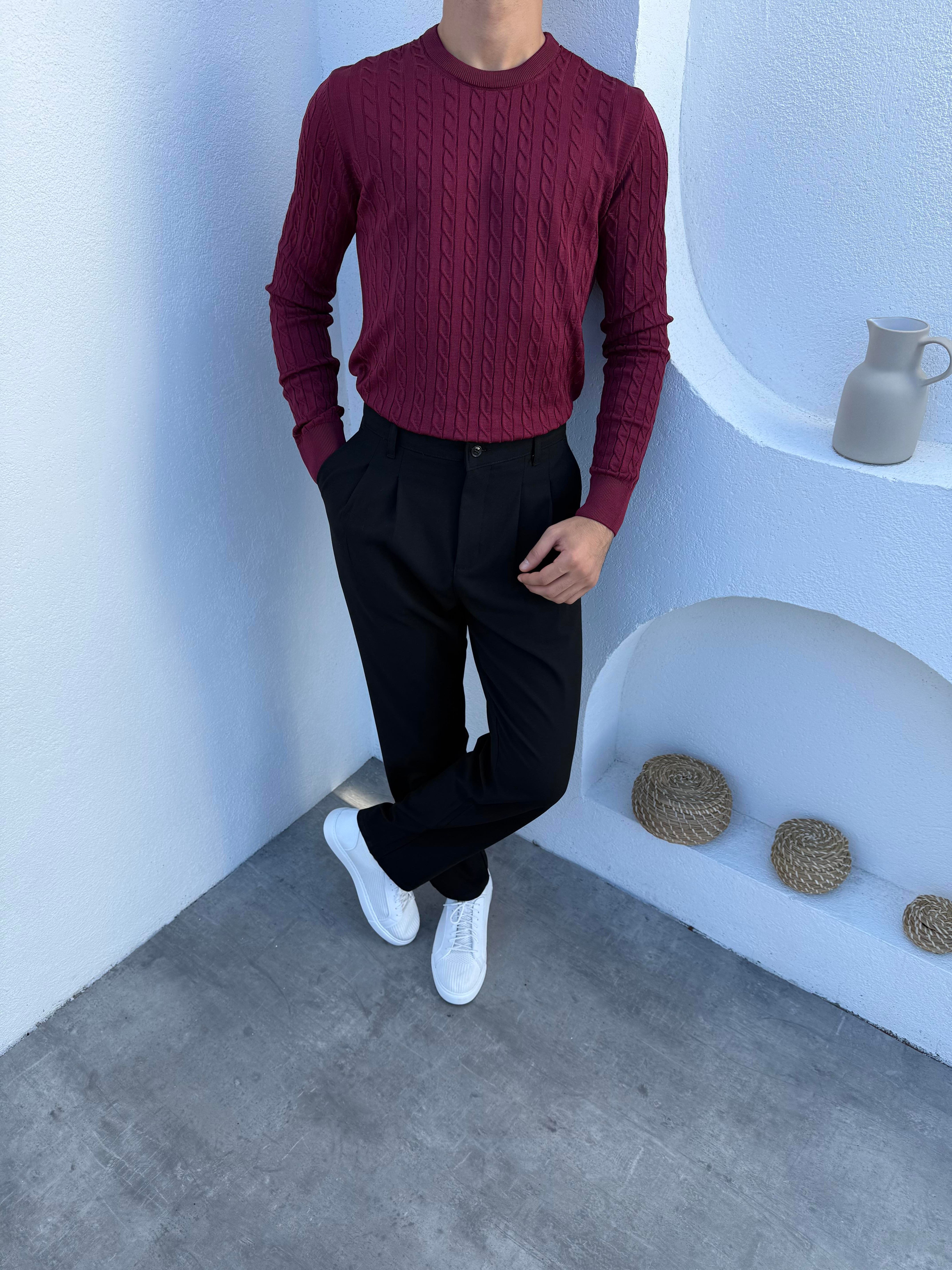 Saç Örgü Pamuklu Likralı Triko Bordo