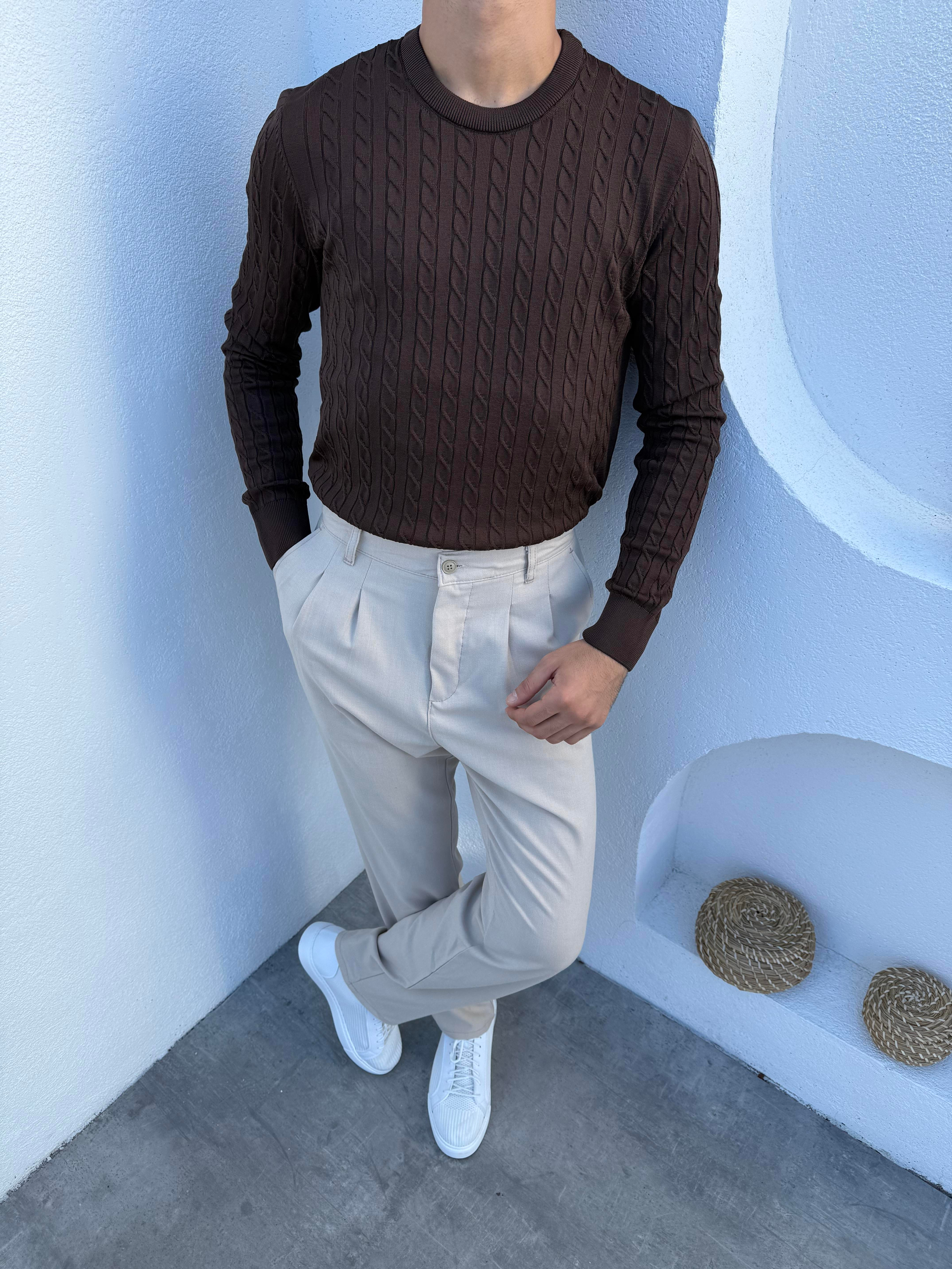Saç Örgü Pamuklu Likralı Triko Kahve