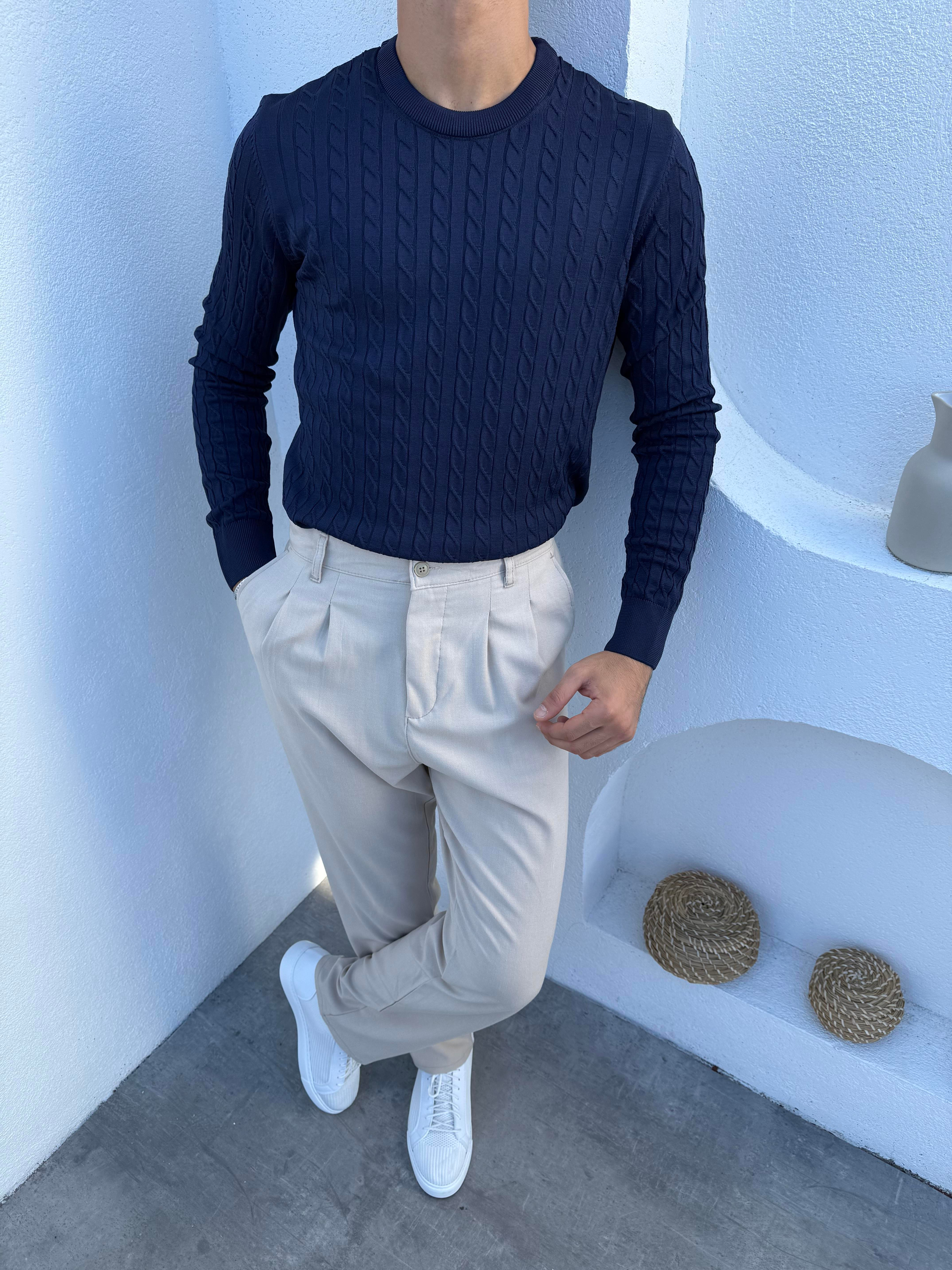 Saç Örgü Pamuklu Likralı Triko Lacivert