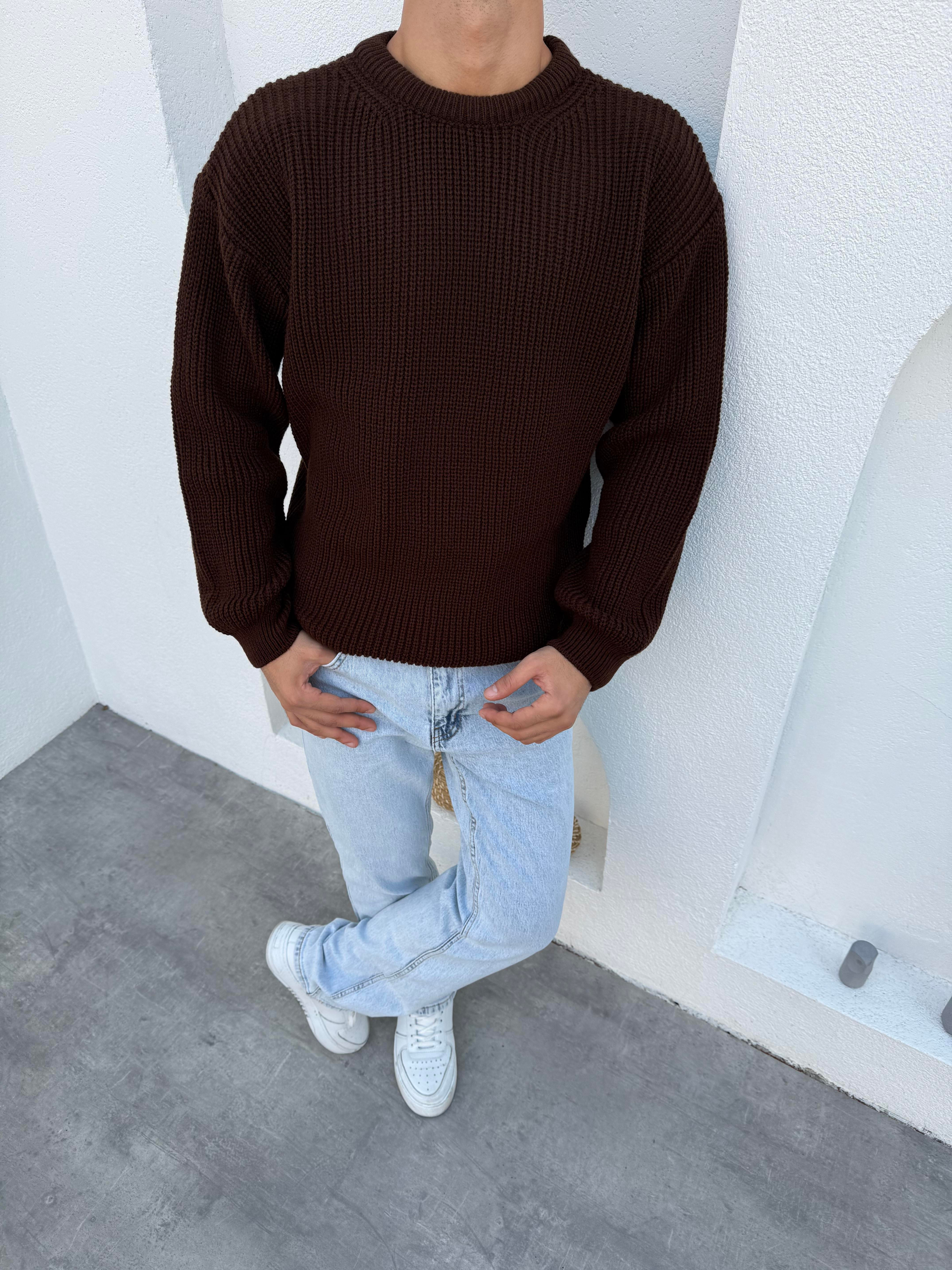 Selanik Pamuk Örme Bisiklet Yaka Triko Kazak Kahve (FM41836)