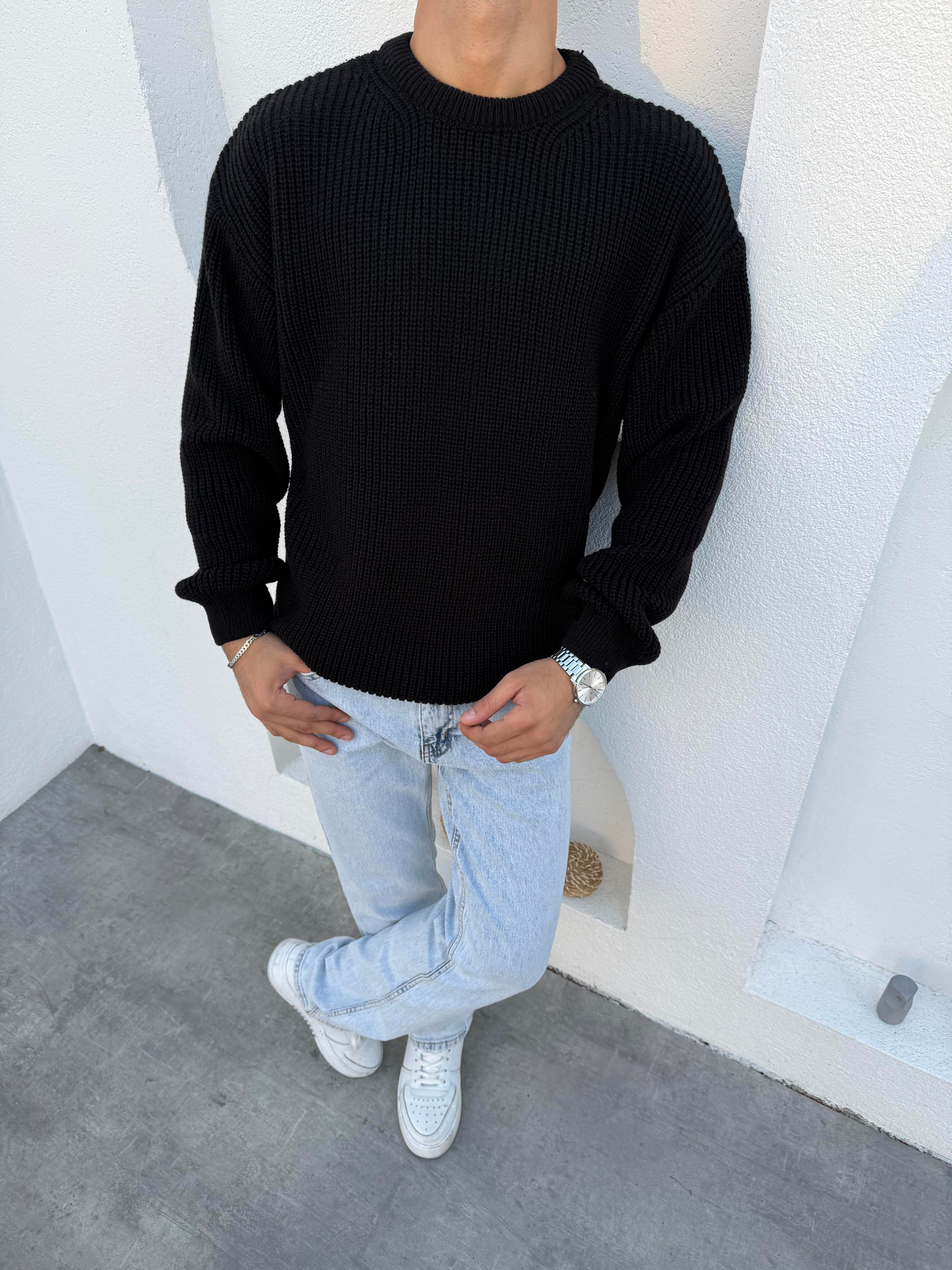 Selanik Pamuk Örme Bisiklet Yaka Triko Kazak Siyah (FM41836)