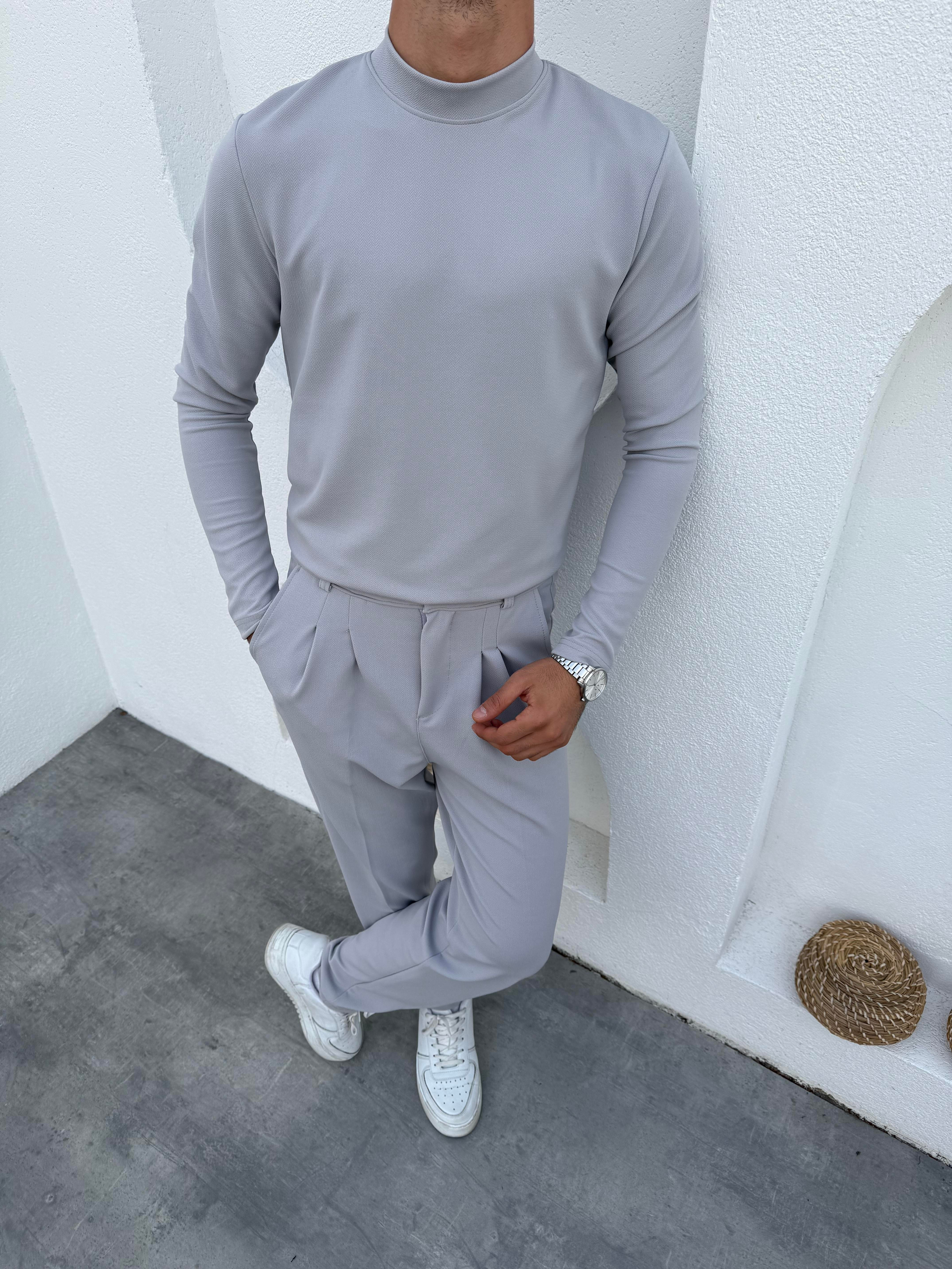 Yarım Balıkçı Pileli Pantolon Takım Gri