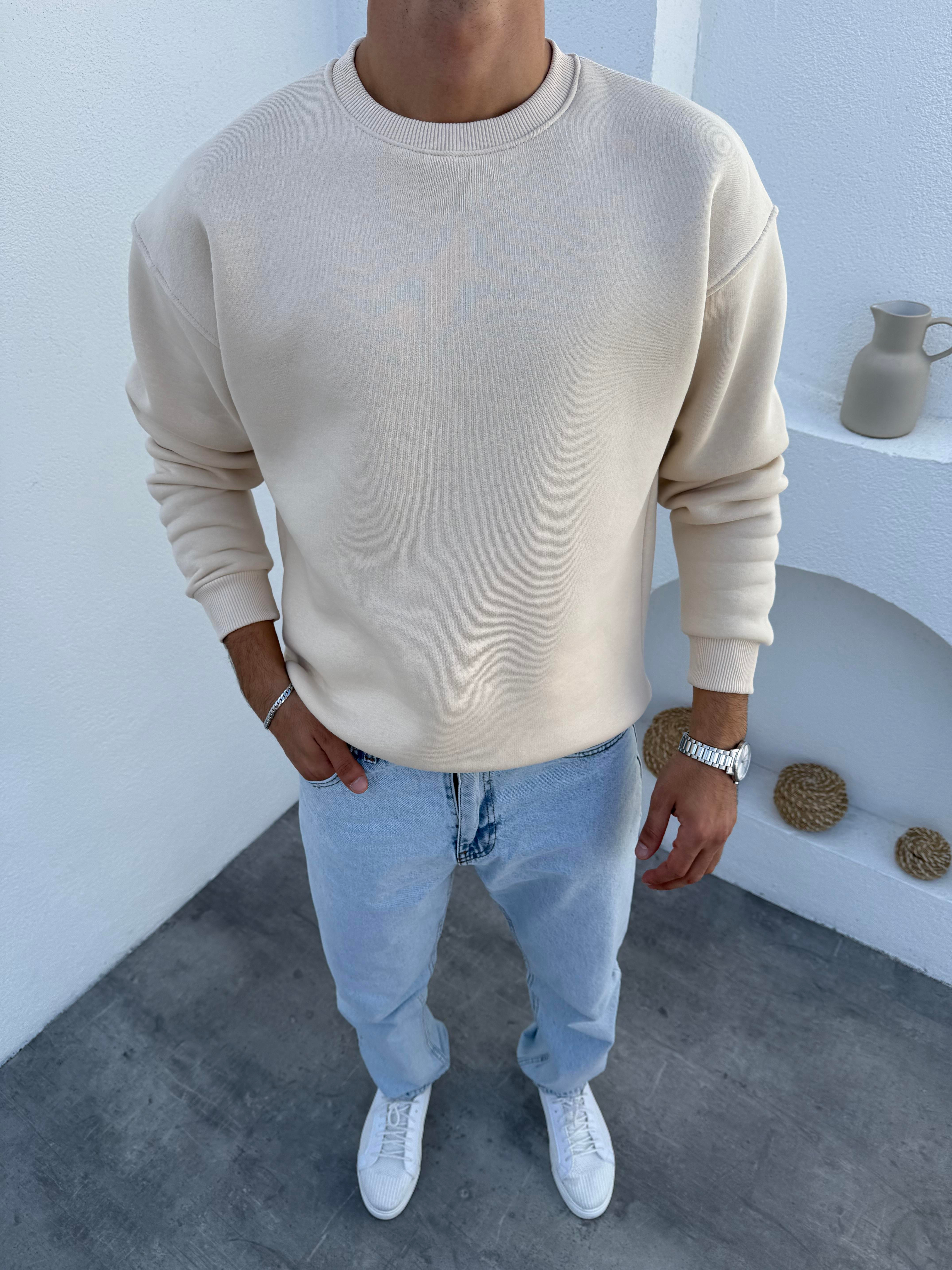 3 iplik Şardonlu Basic Sweatshirt Bej