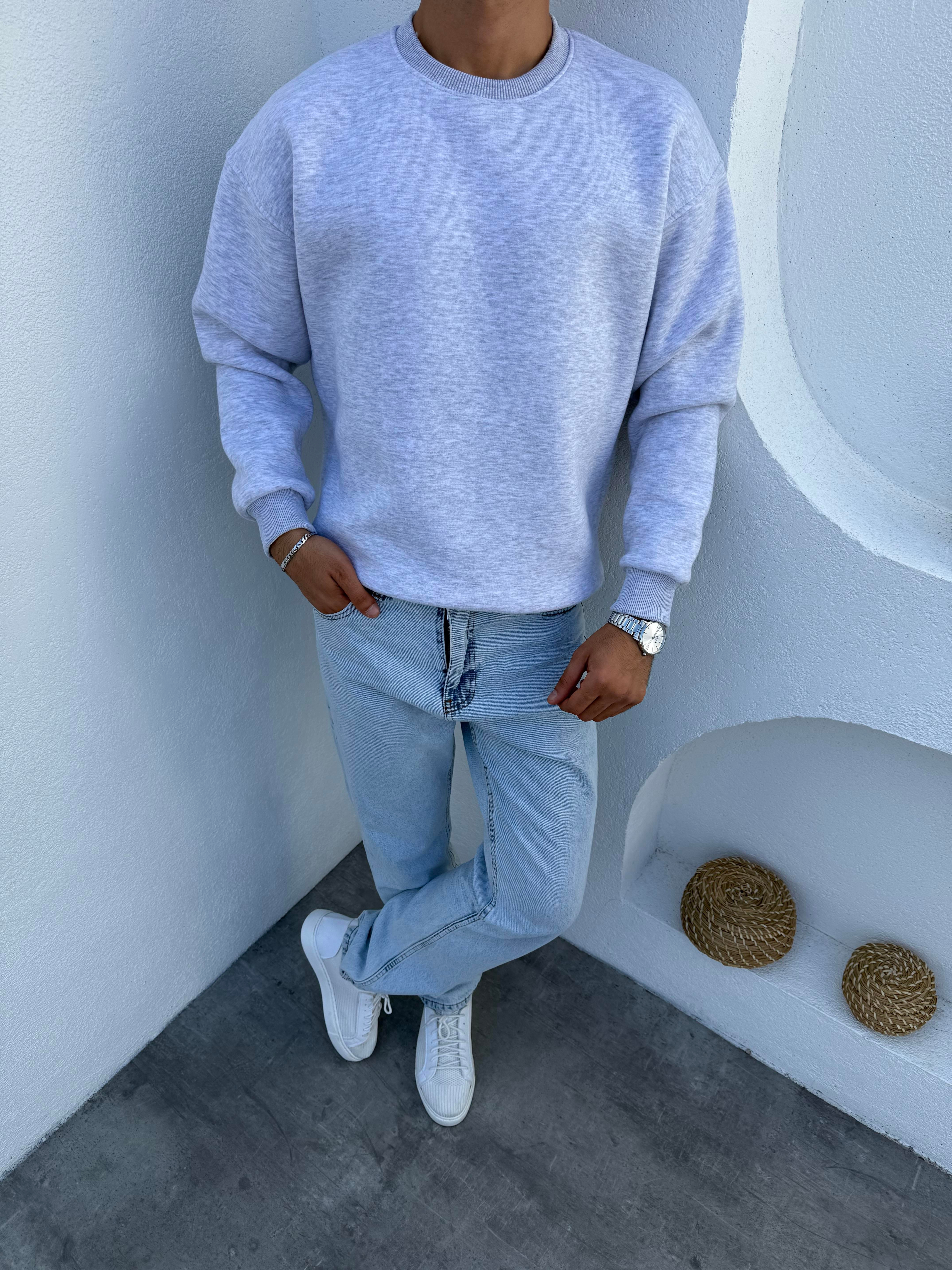 3 iplik Şardonlu Basic Sweatshirt Gri (FM91533)