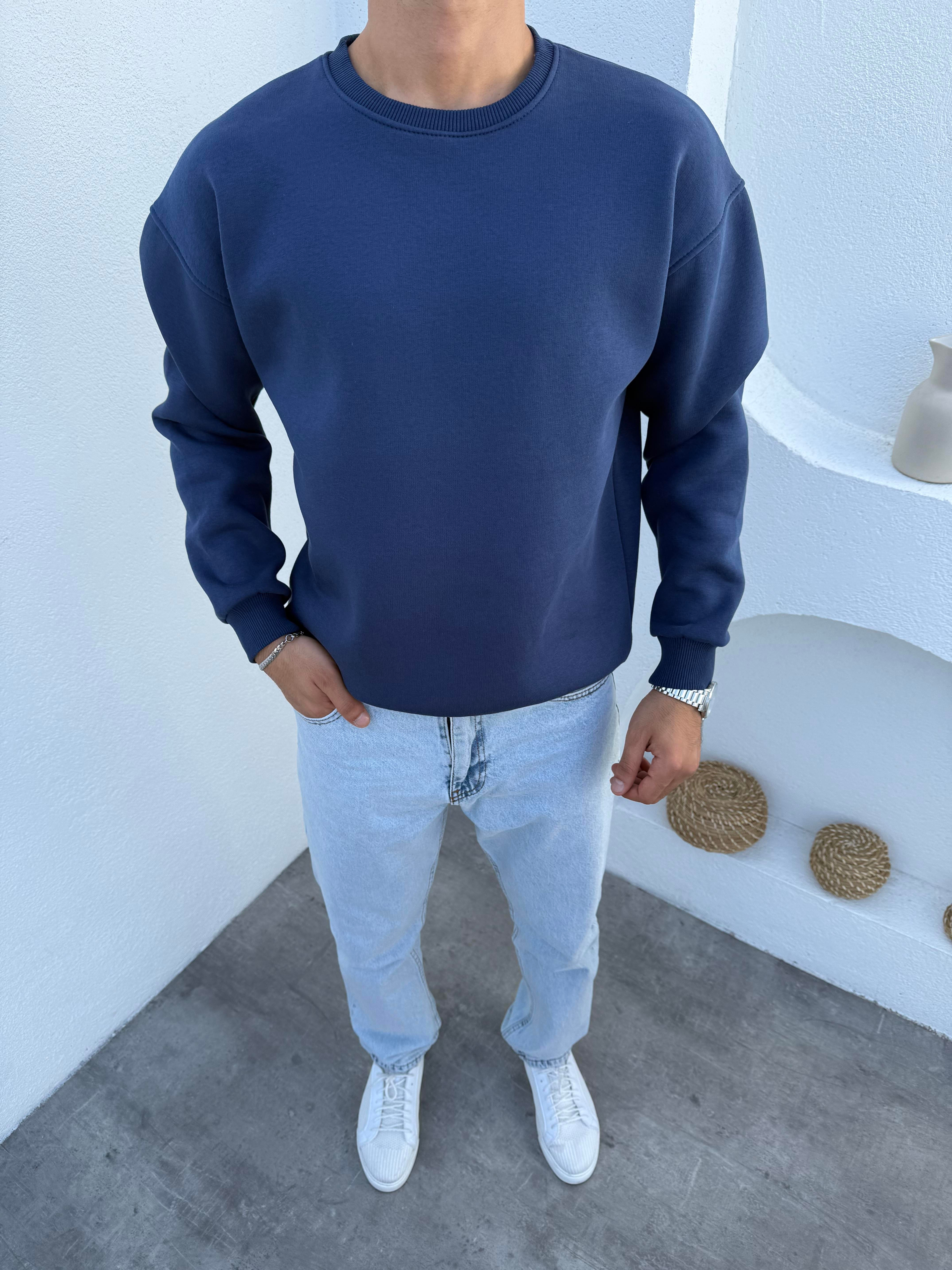 3 iplik Şardonlu Basic Sweatshirt Lacivert (FM91533)