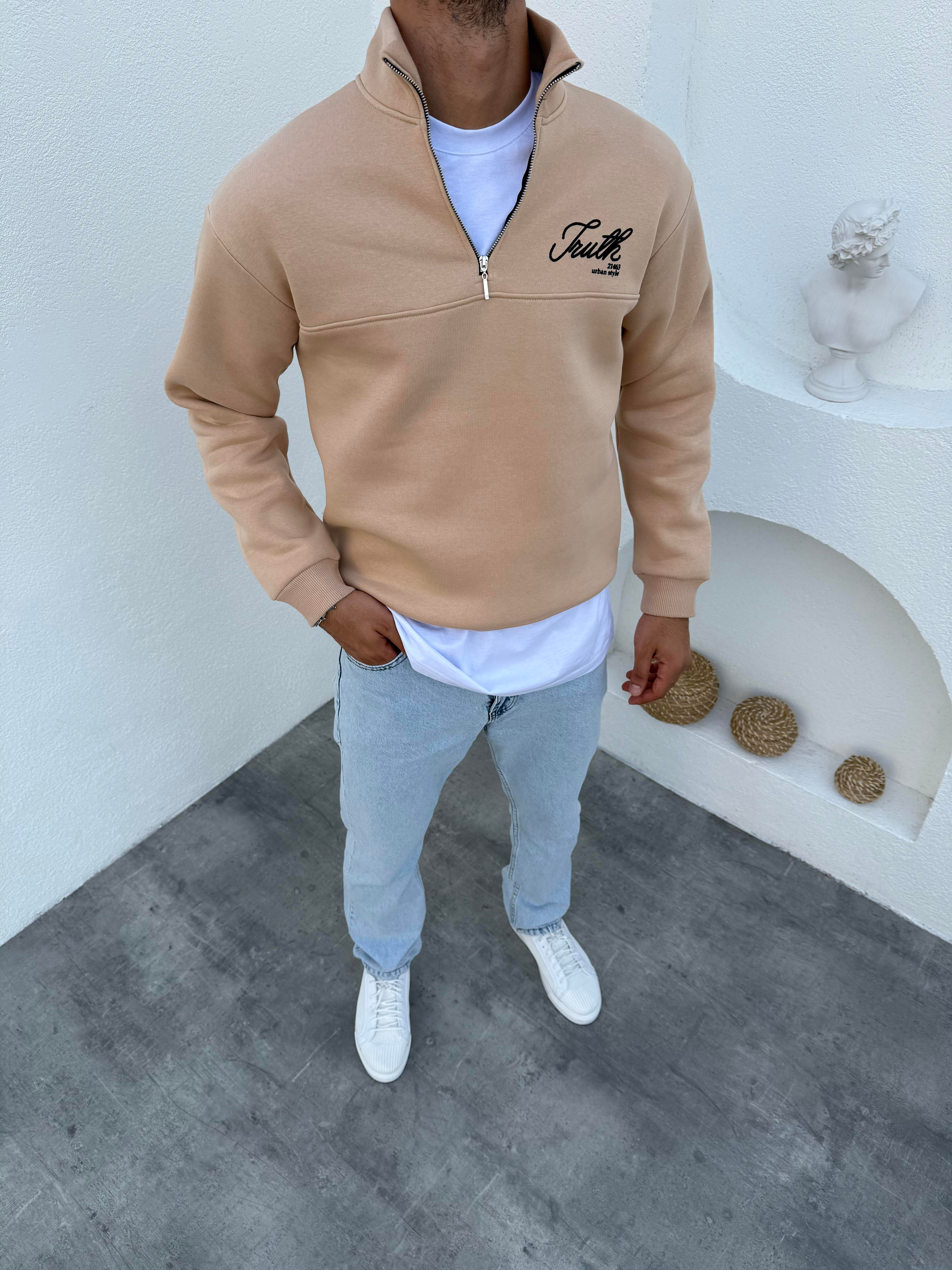 3 İplik Şardonlu Dik Yaka Sweatshirt Bej