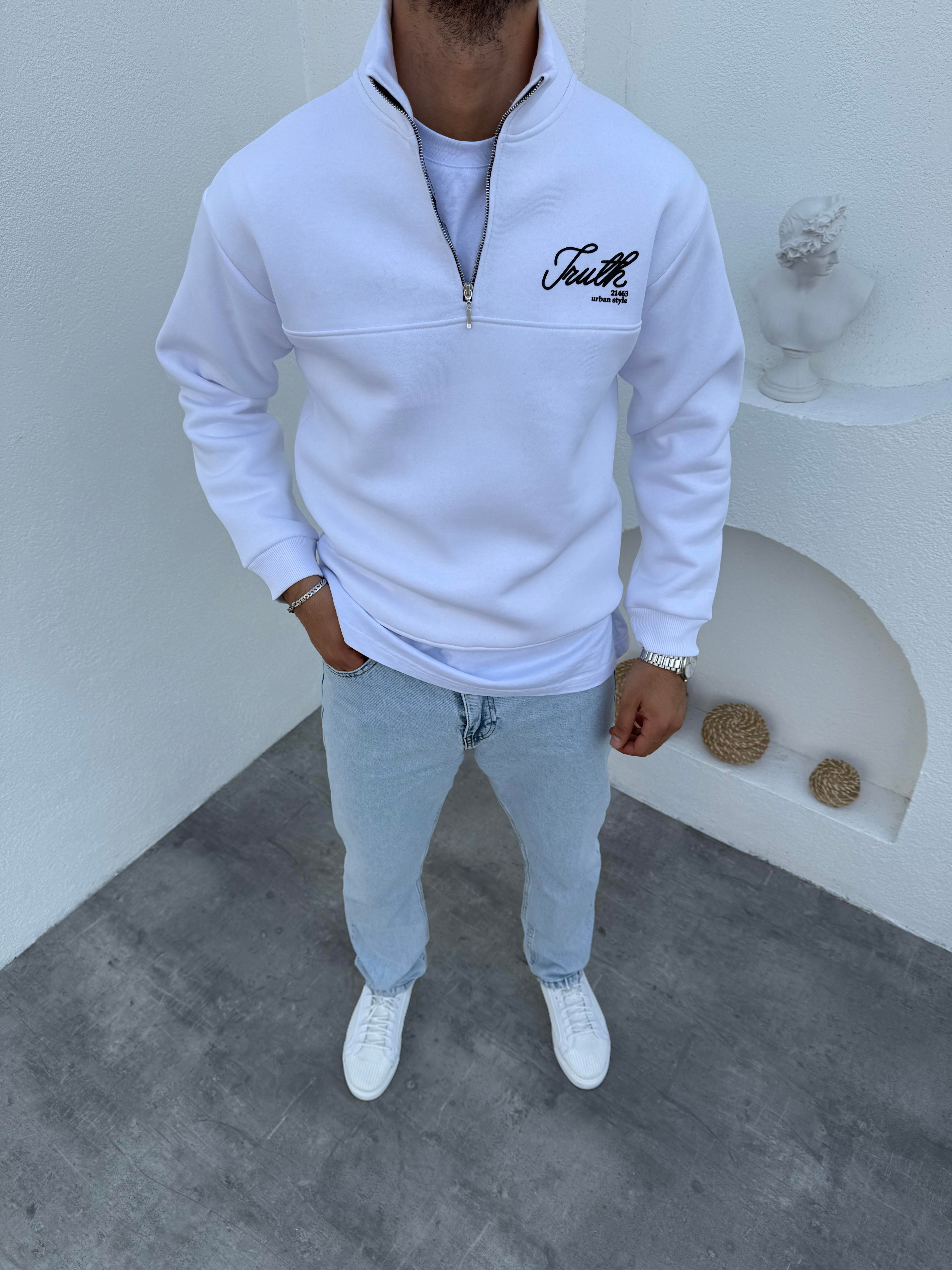 3 İplik Şardonlu Dik Yaka Sweatshirt Beyaz