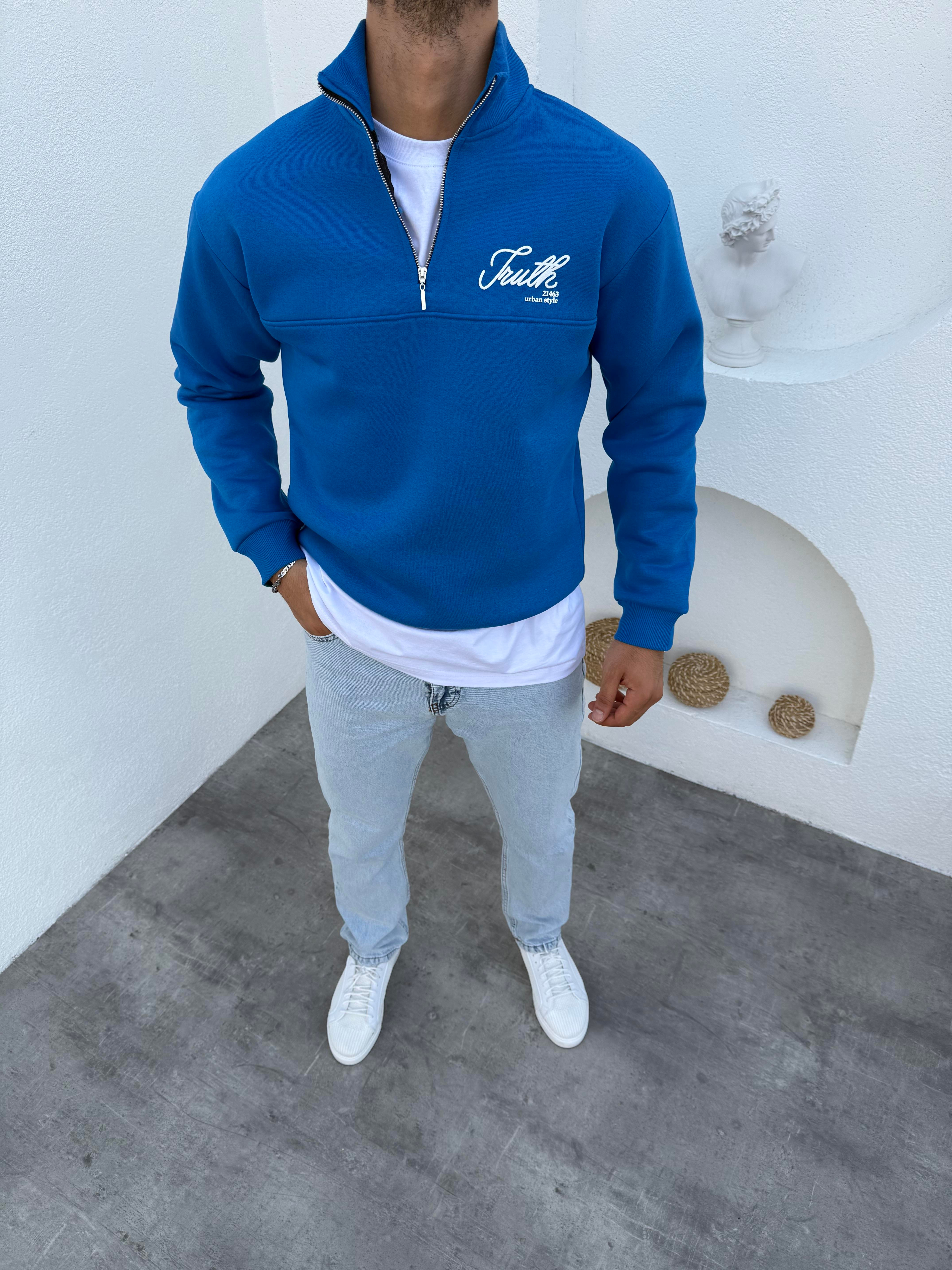 3 İplik Şardonlu Dik Yaka Sweatshirt Mavi (FM31835)