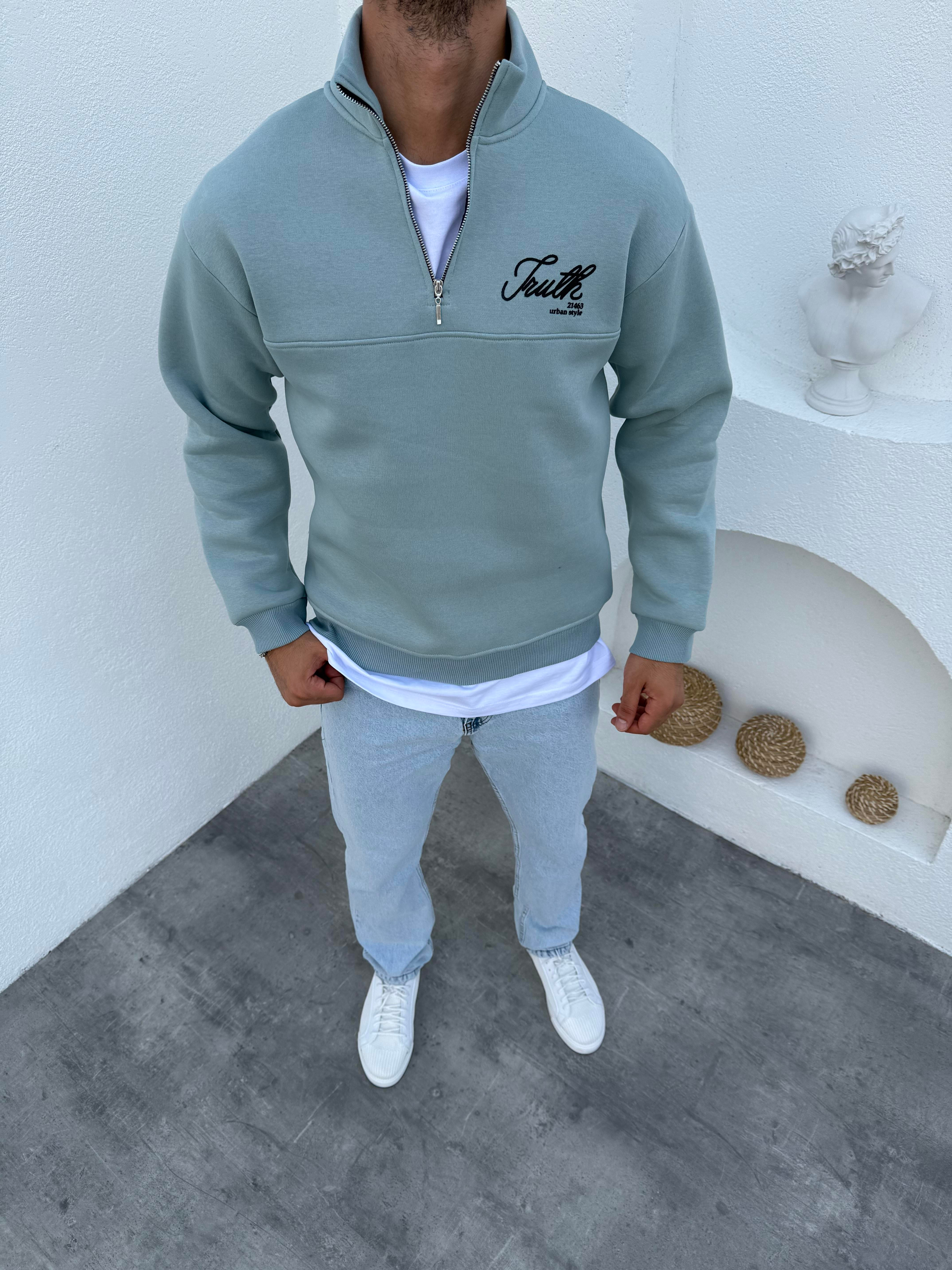 3 İplik Şardonlu Dik Yaka Sweatshirt Mint Yeşili (FM31835)