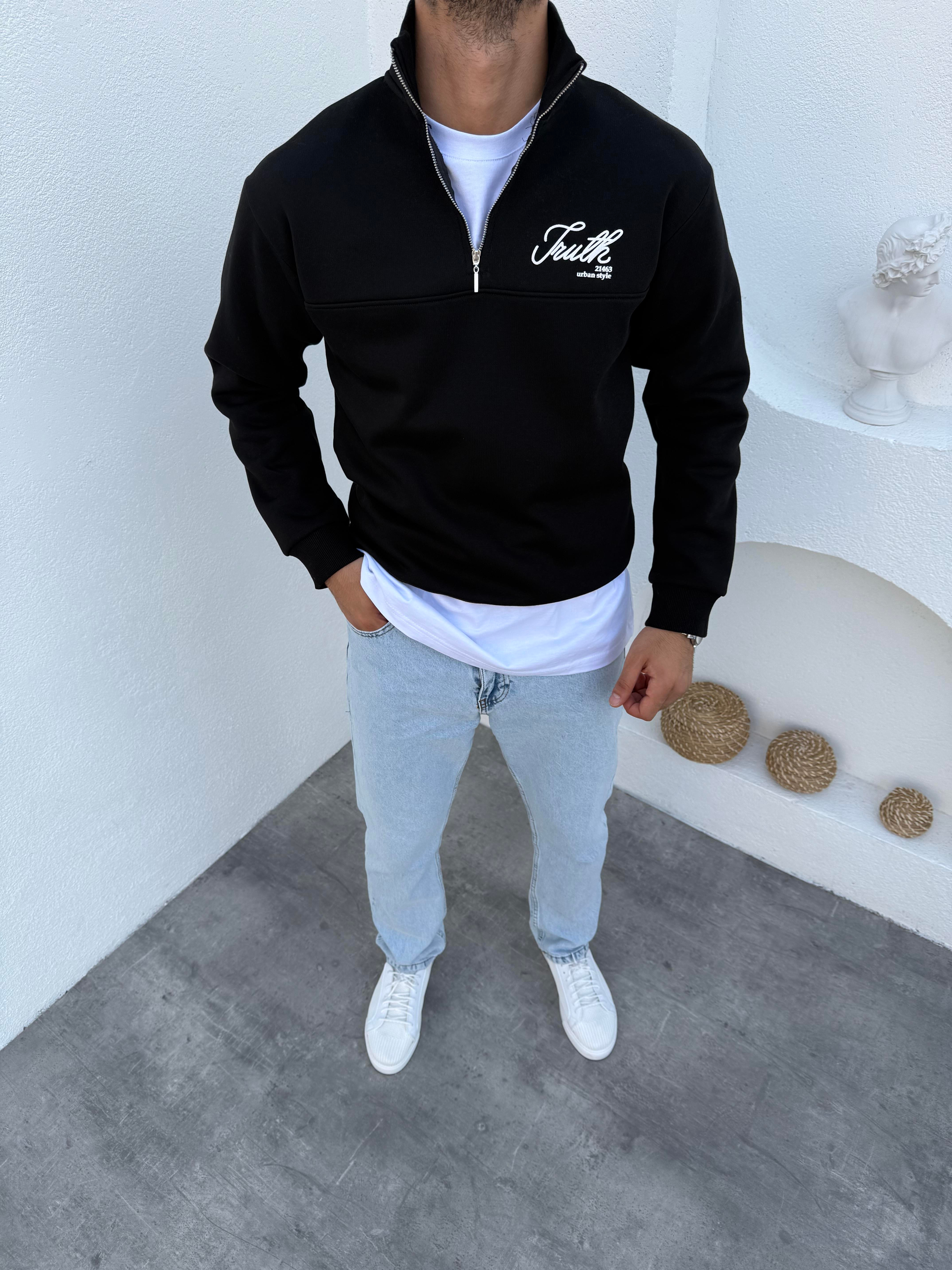 3 İplik Şardonlu Dik Yaka Sweatshirt Siyah (FM31835)