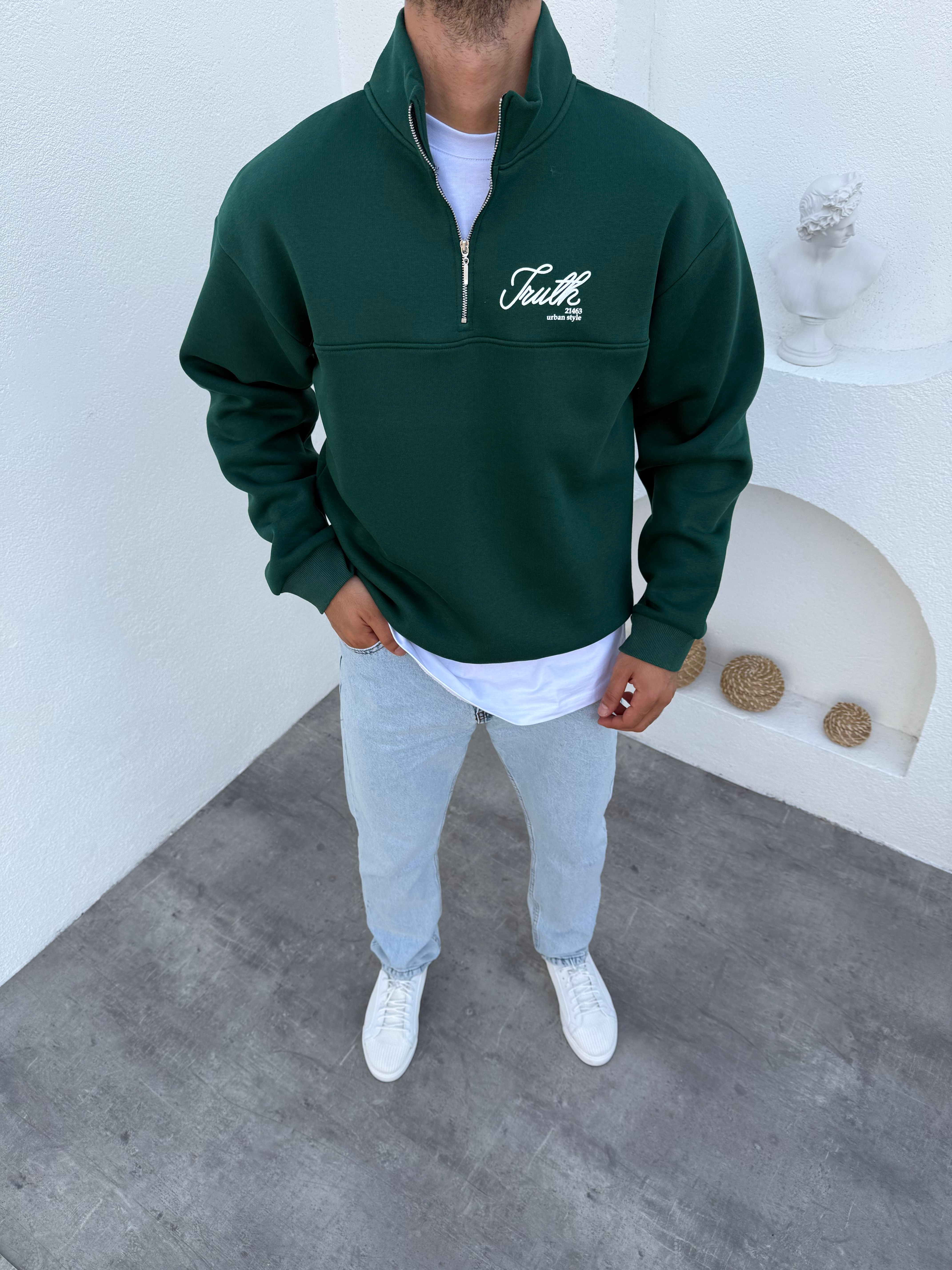3 İplik Şardonlu Dik Yaka Sweatshirt Yeşil