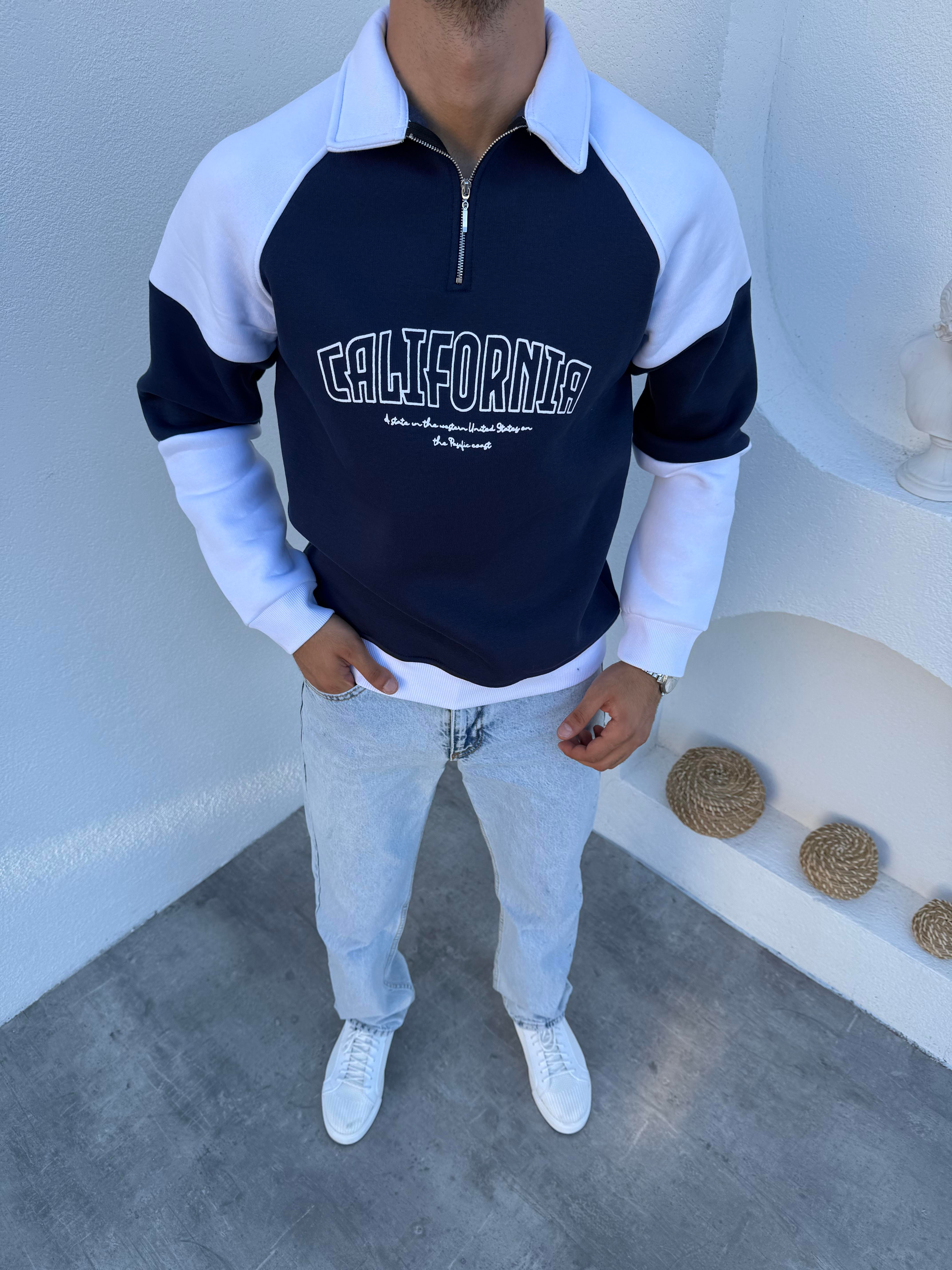 3 İplik Şardonlu Yarım Fermuar California Sweatshirt Lacivert
