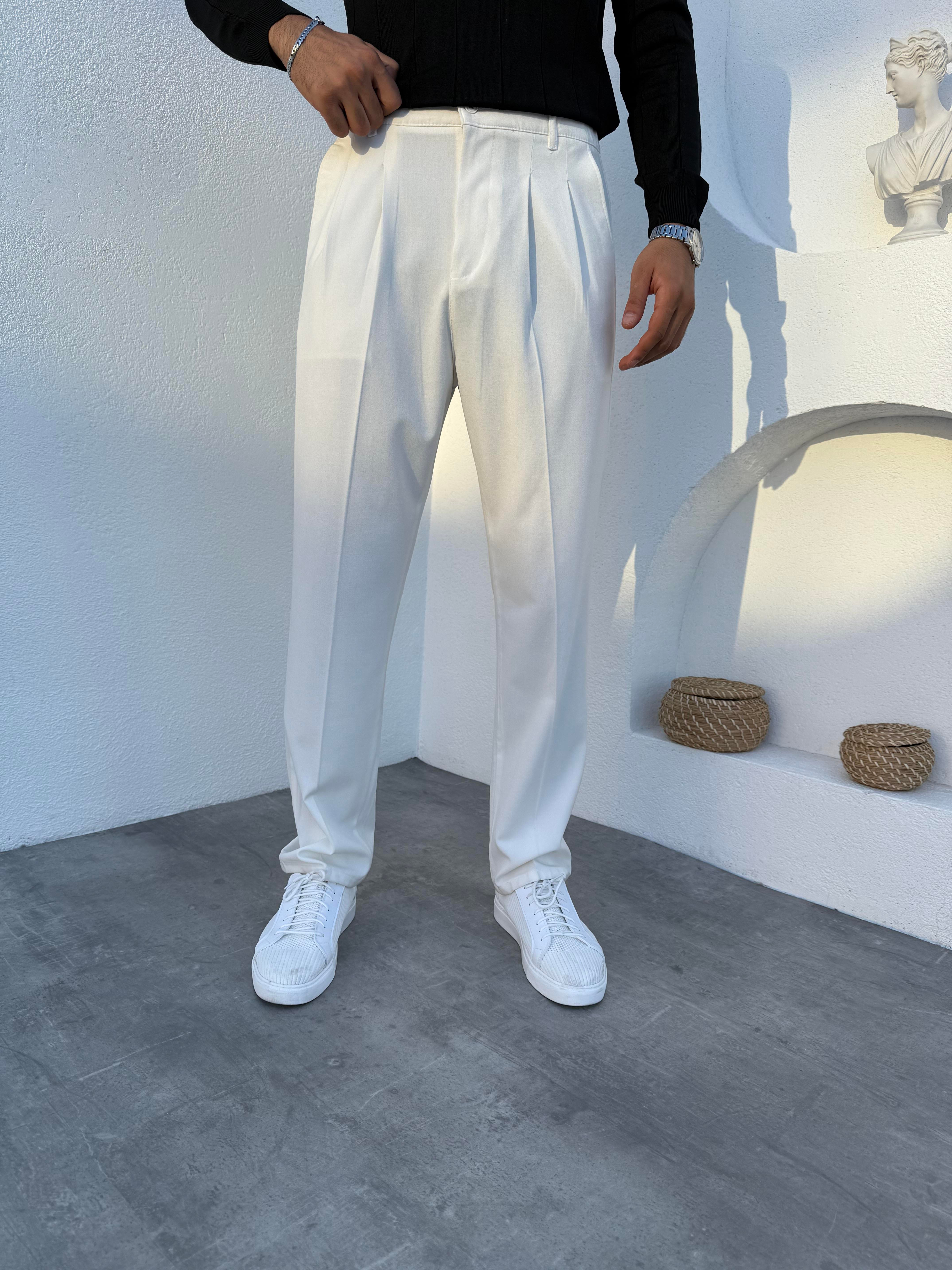 Baggy Pileli Kumaş Pantolon Beyaz (FM6295)