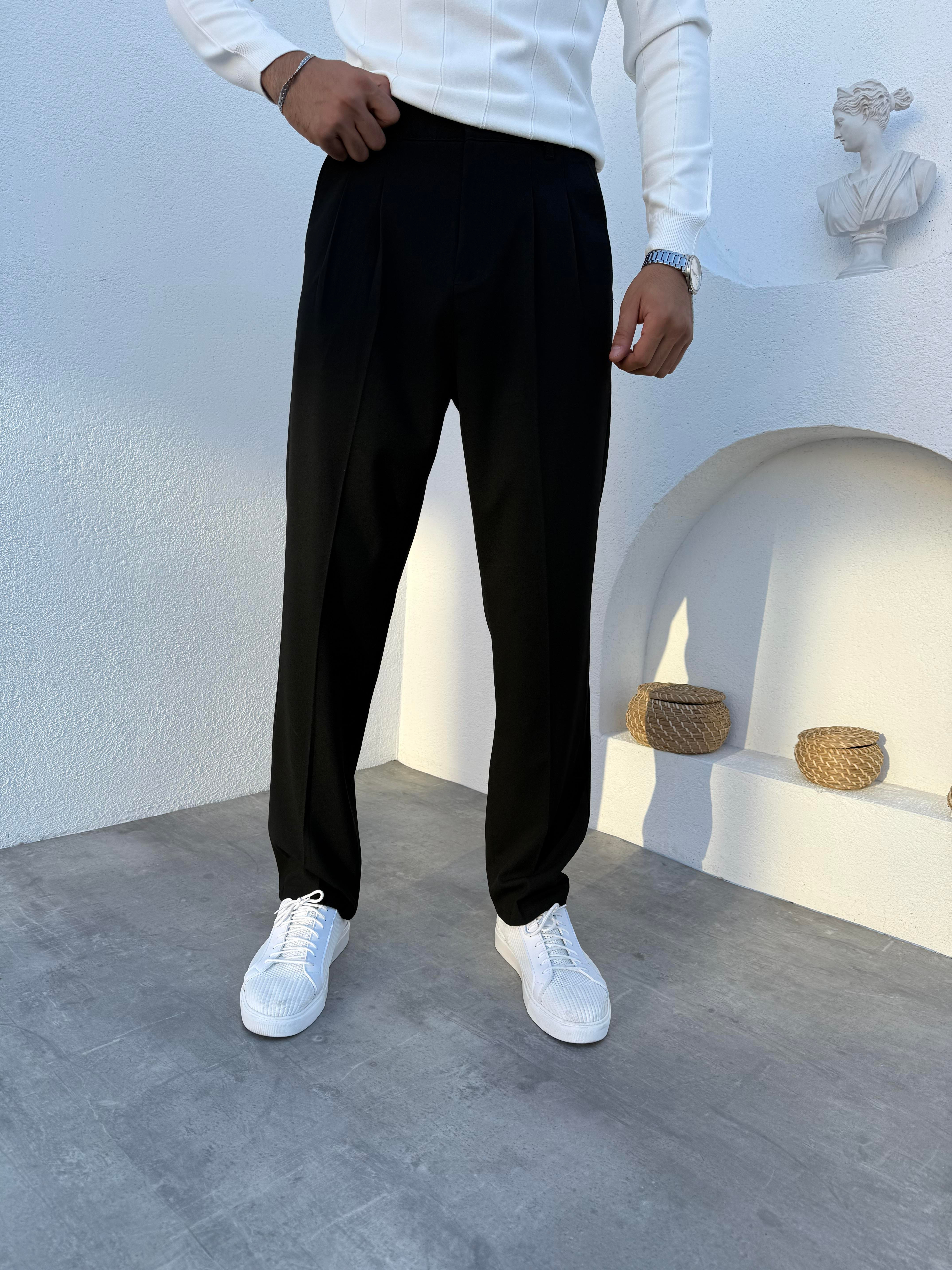 Baggy Pileli Kumaş Pantolon Siyah (FM6295)