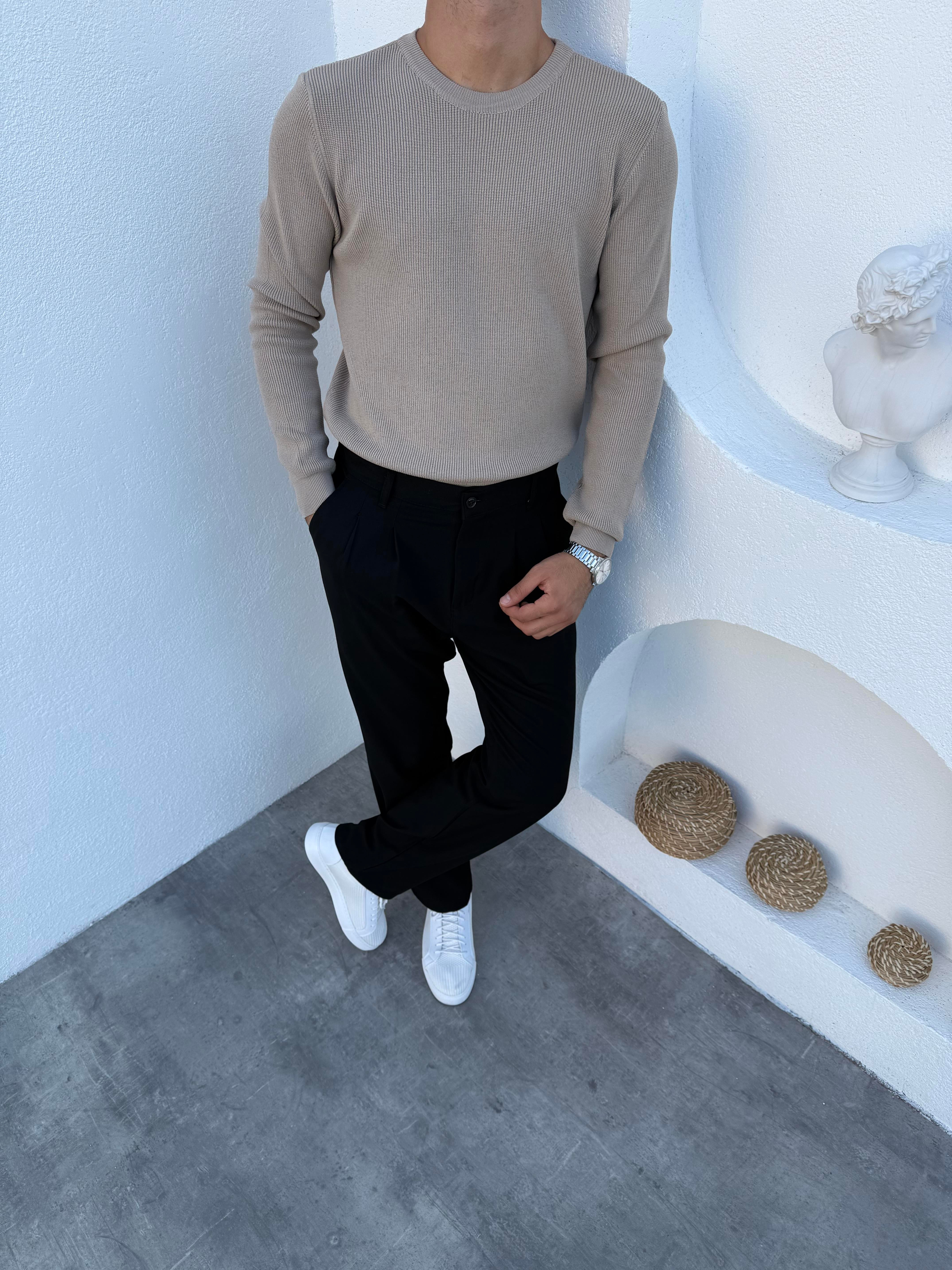 Çelik Örme Bisiklet Yaka Triko Kazak Vizon (FM39264)