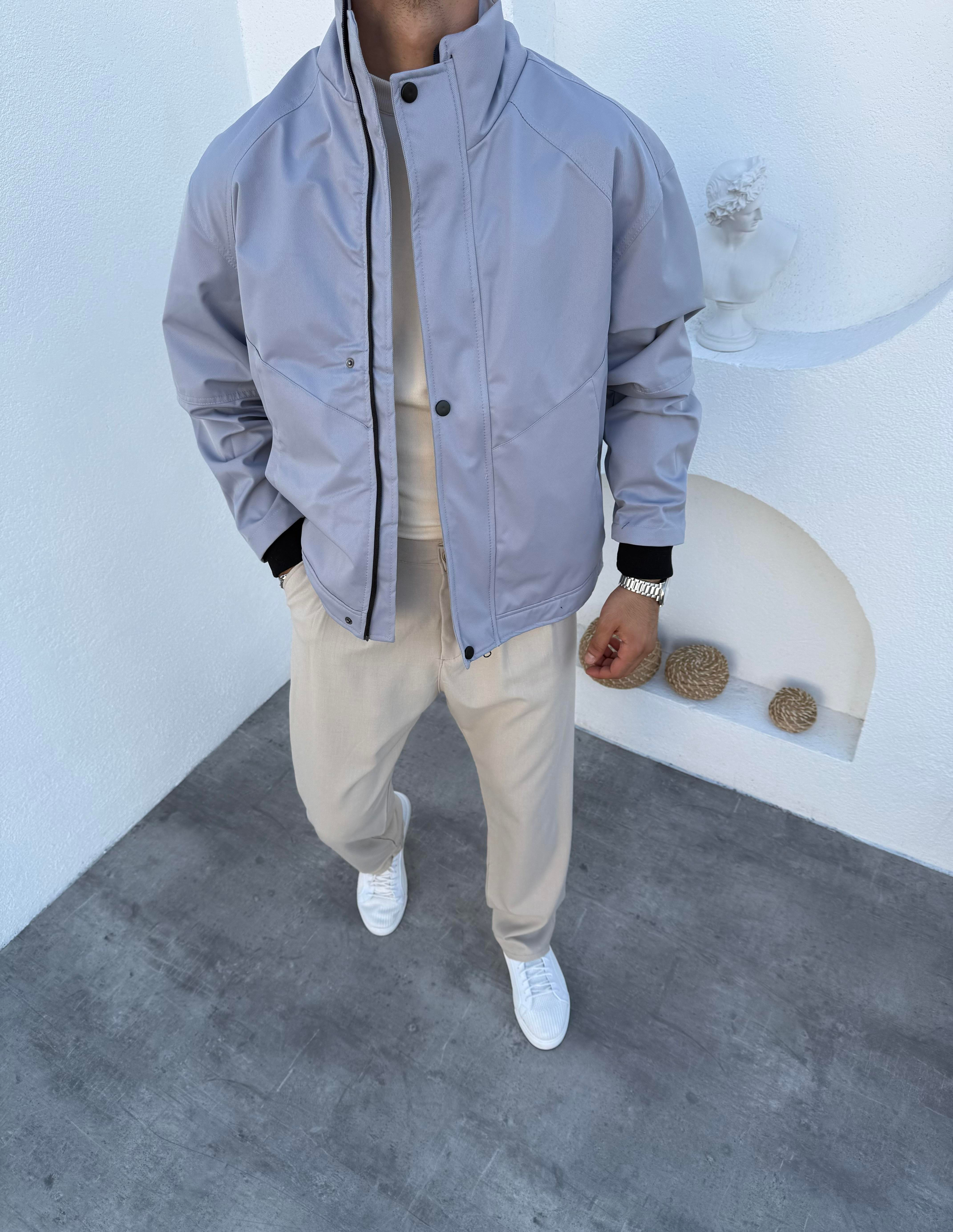 Dik Yaka Su Geçirmez Mevsimlik Ceket Gri