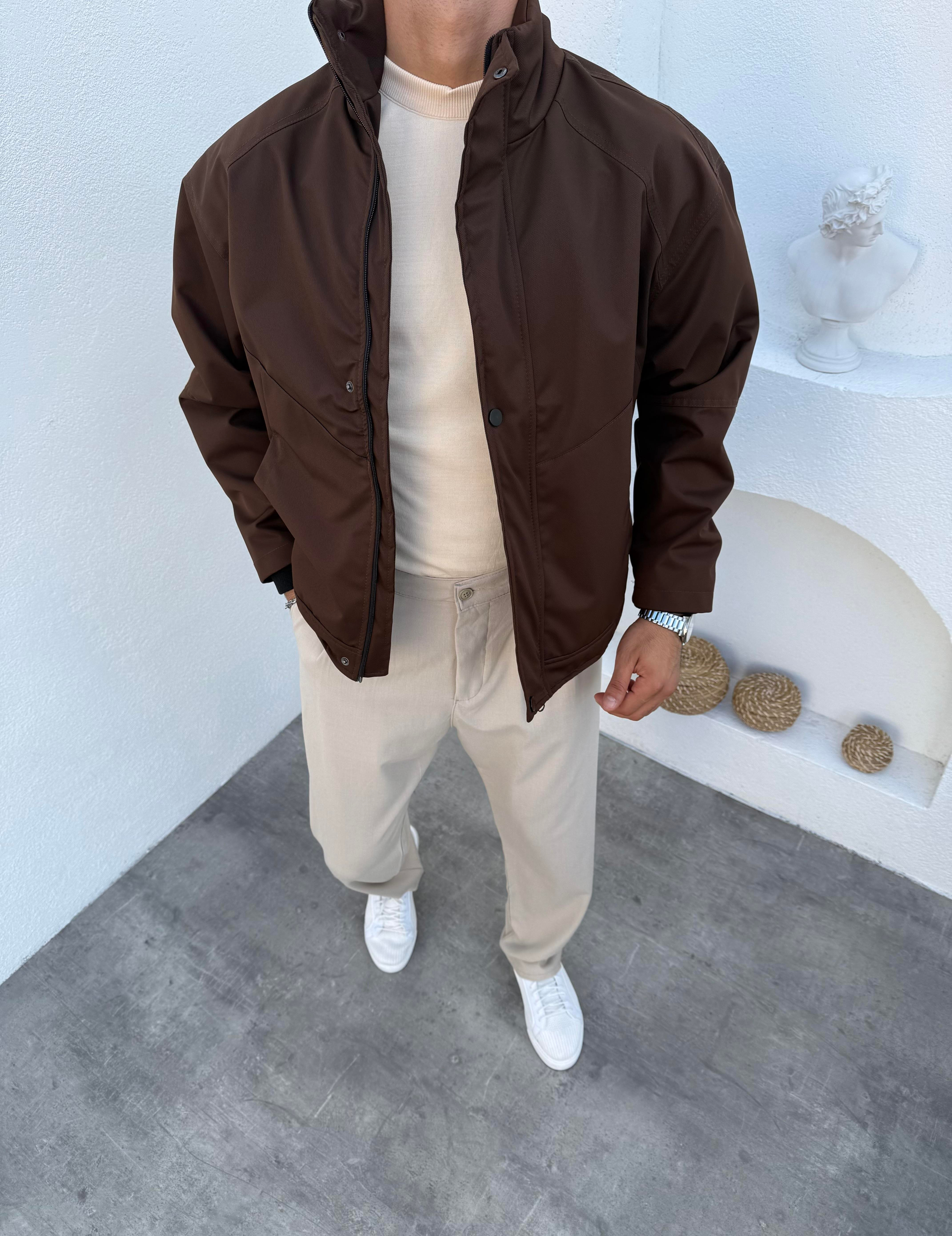 Dik Yaka Su Geçirmez Mevsimlik Ceket Kahve (FM91639)