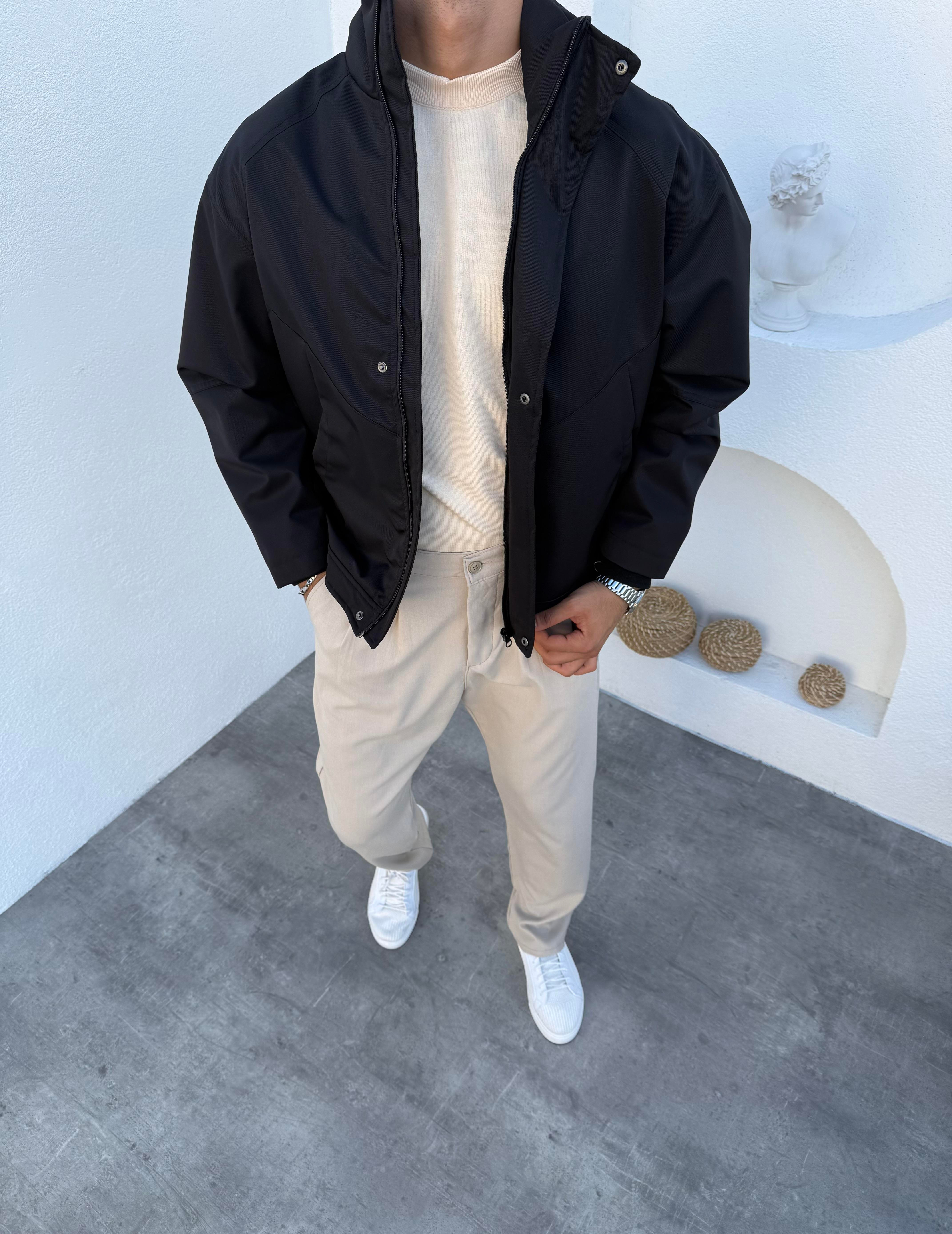 Dik Yaka Su Geçirmez Mevsimlik Ceket Sİyah