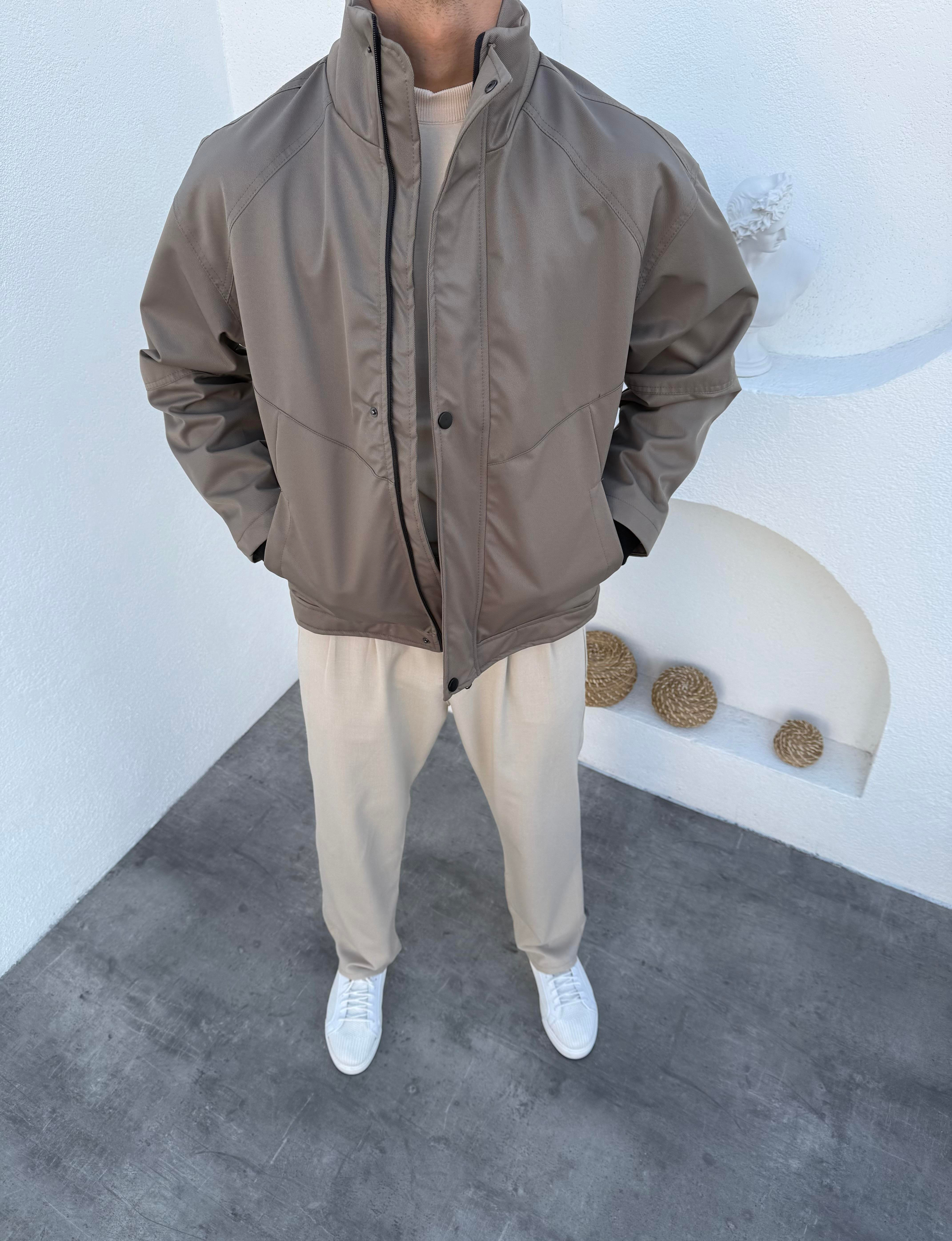 Dik Yaka Su Geçirmez Mevsimlik Ceket Vizon
