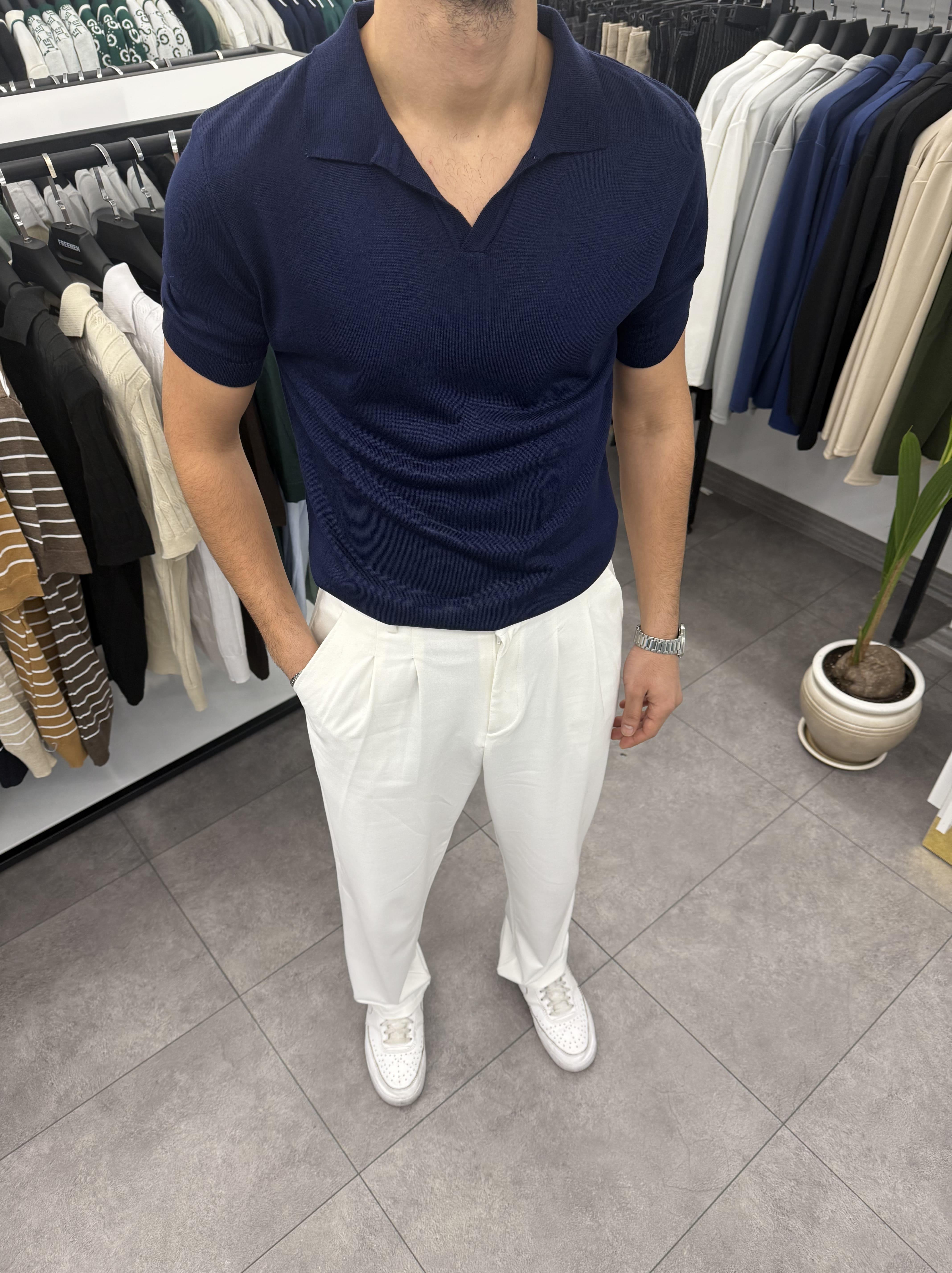 Düz Basic Polo Yaka Triko Lacivert (FM3002)