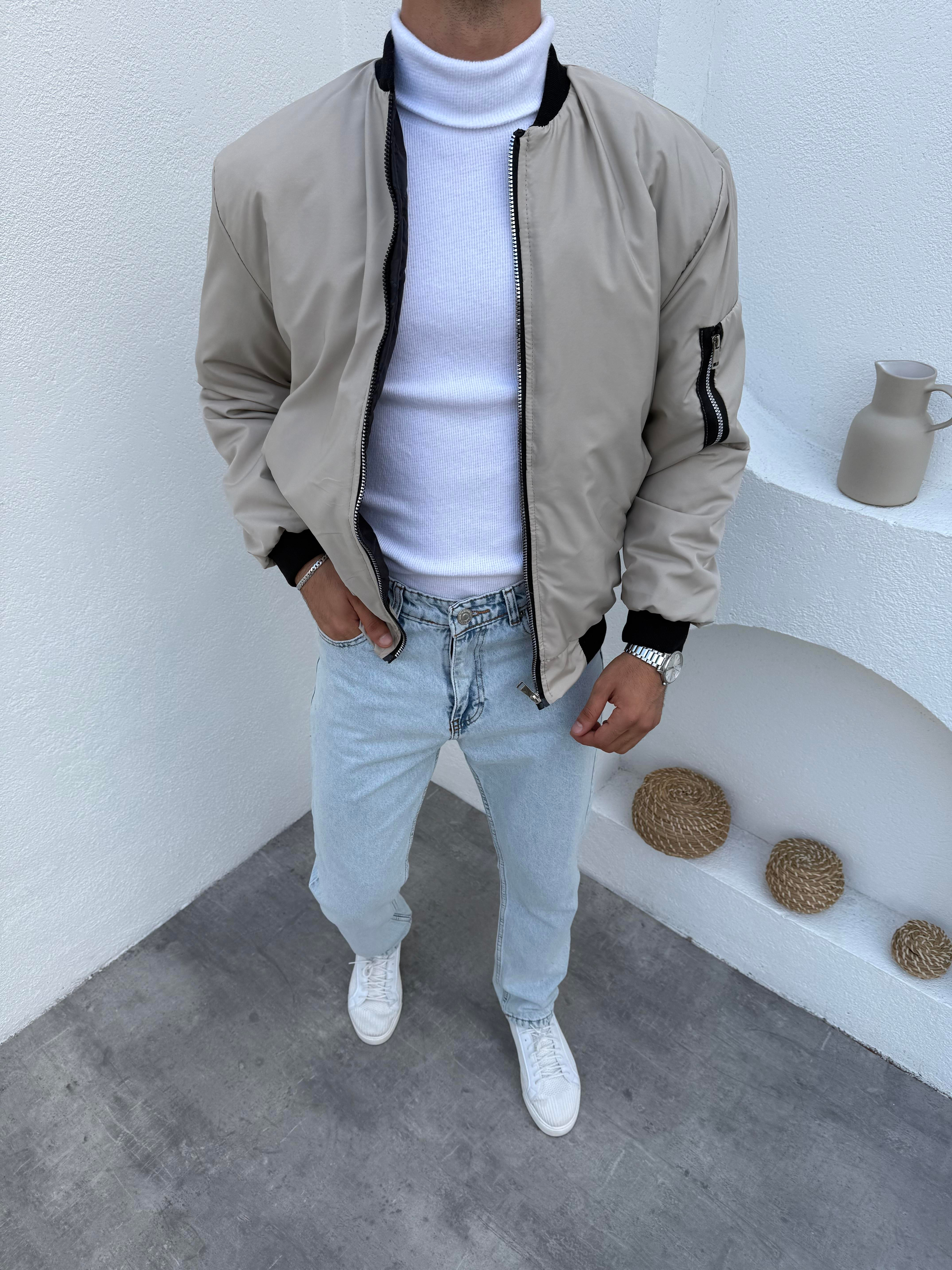 Elyaflı Bomber Ceket Siyah Elyaflı Bomber Ceket Haki