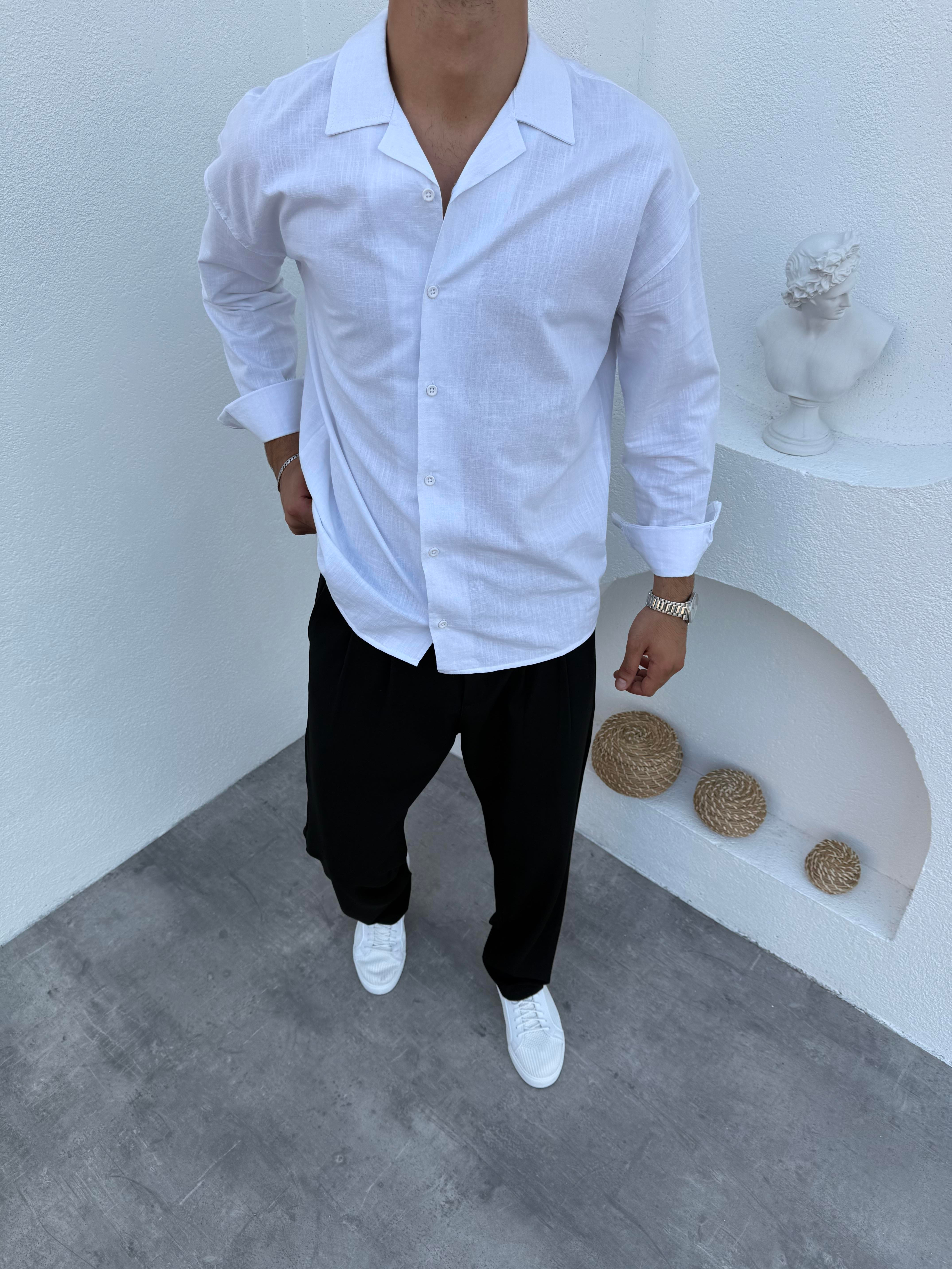 Flamlı Keten Kalın Gömlek Beyaz (FM62945)