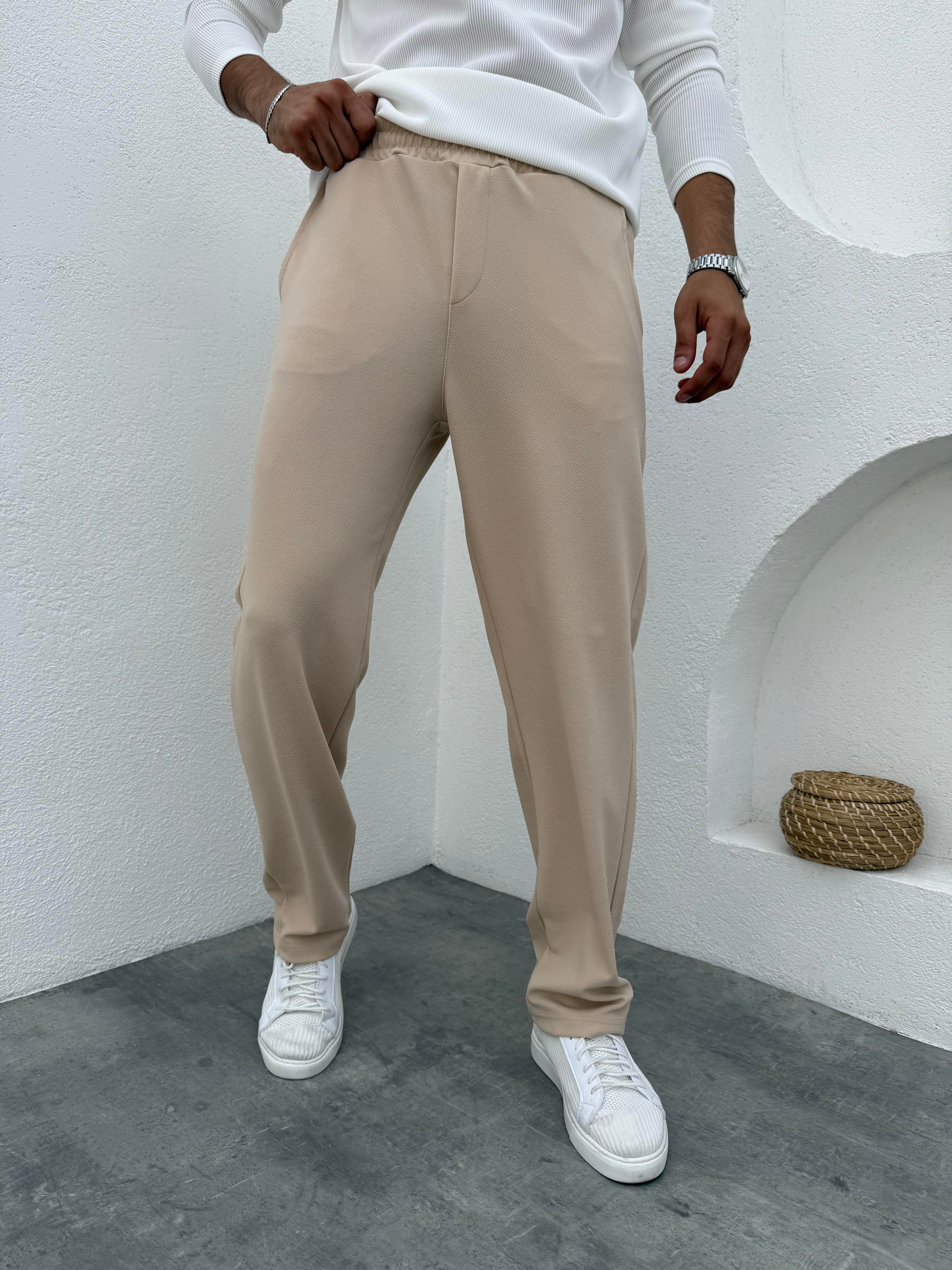 İthal Krep Kumaş Baggy Jogger Pantolon Bej