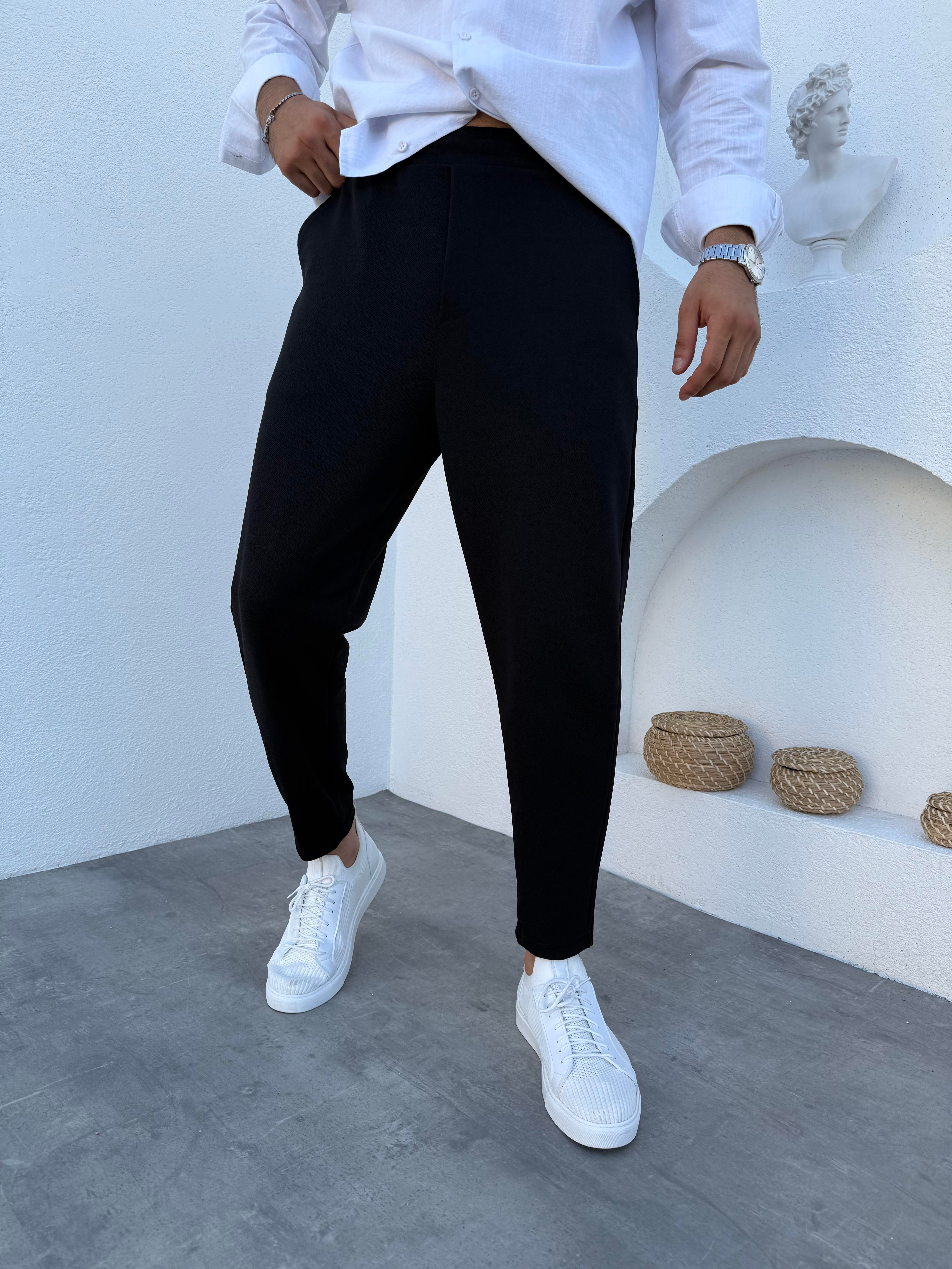 Krep Boyfriend Jogger Pantolon Siyah
