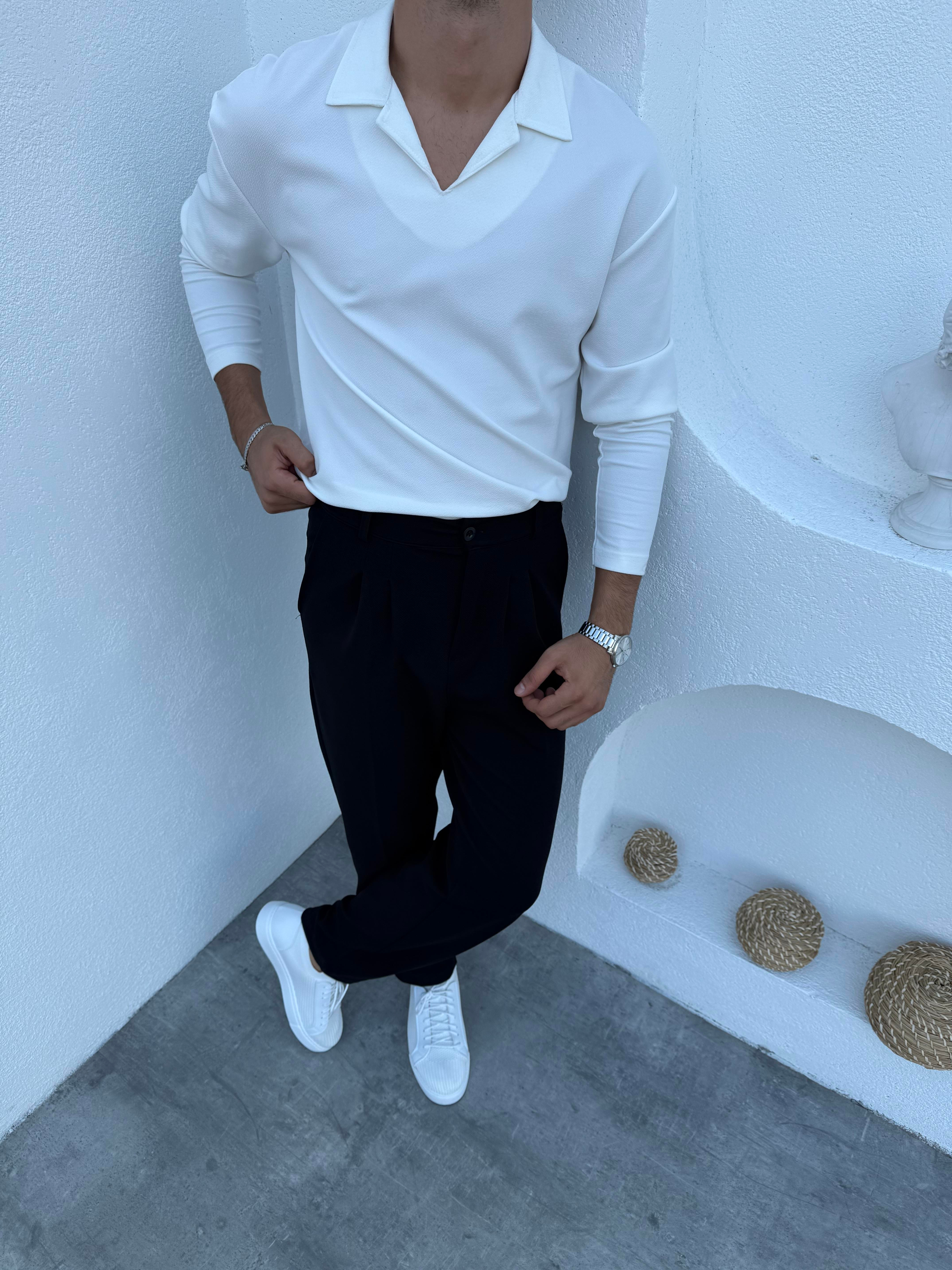 Krep Kumaş Hemşire Yaka Sweatshirt Beyaz (FM992200)