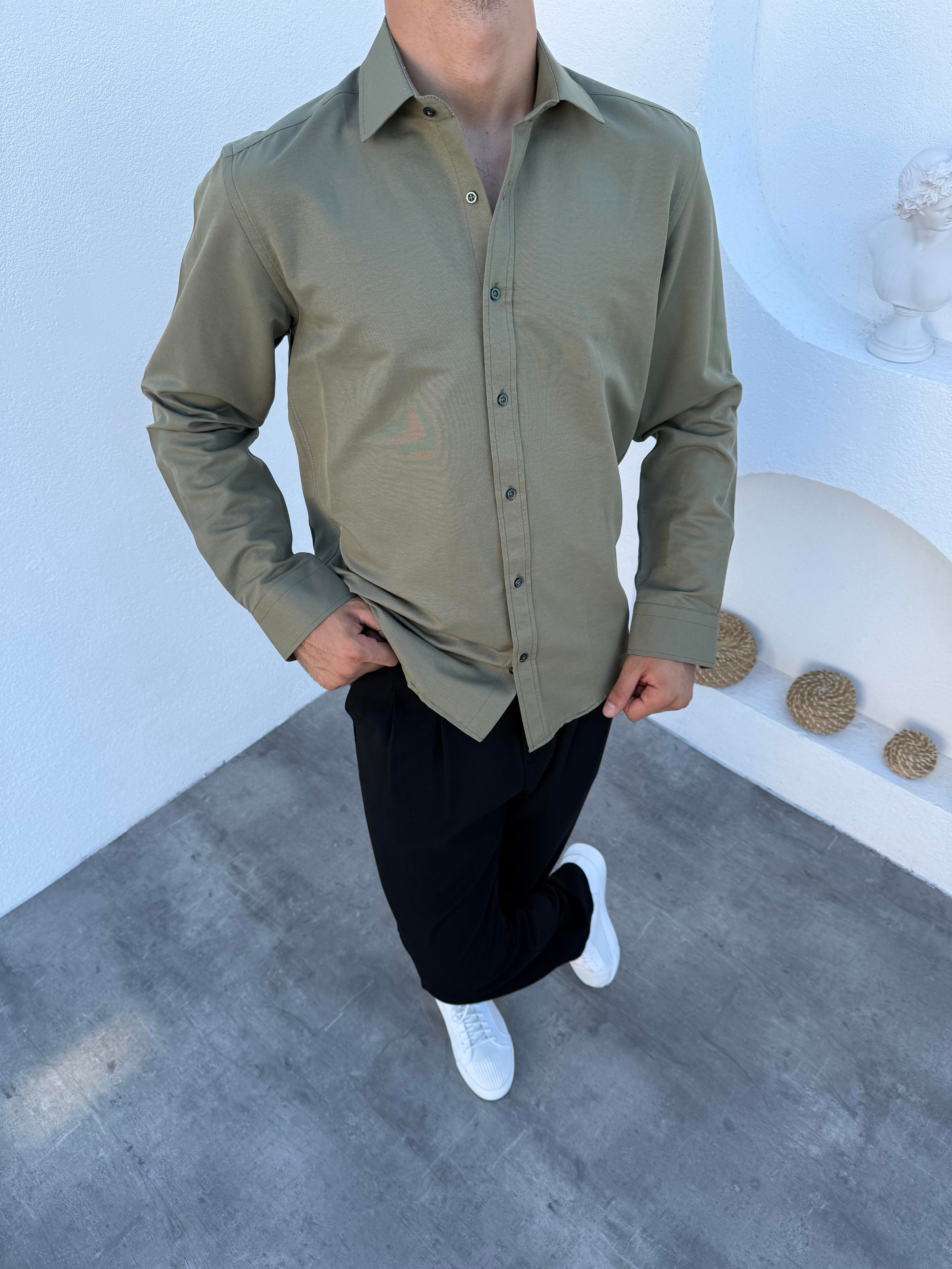 Oxford Pamuklu İtalyan Yaka Gömlek Yeşil