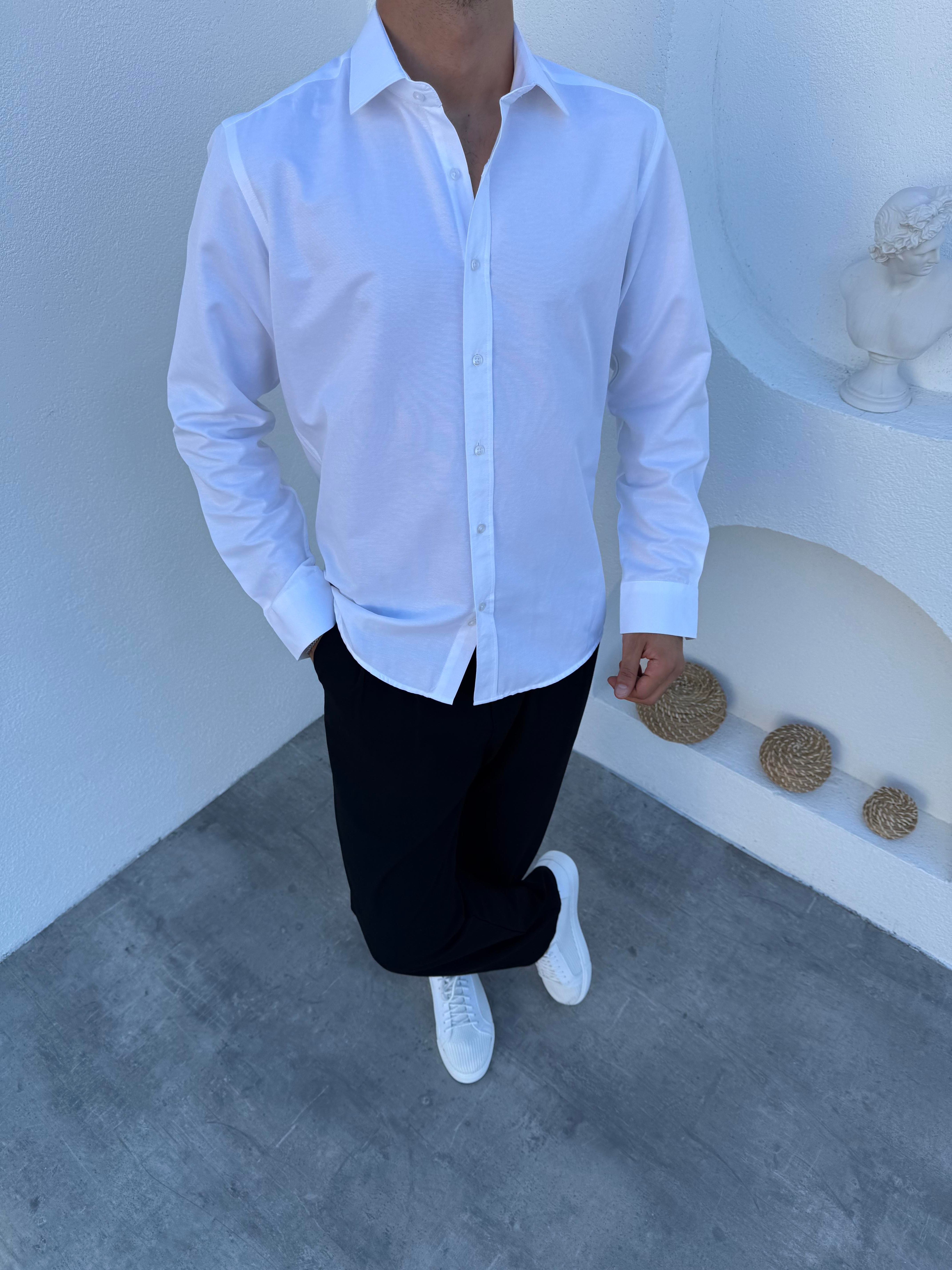 Oxford Pamuklu İtalyan Yaka Gömlek Beyaz