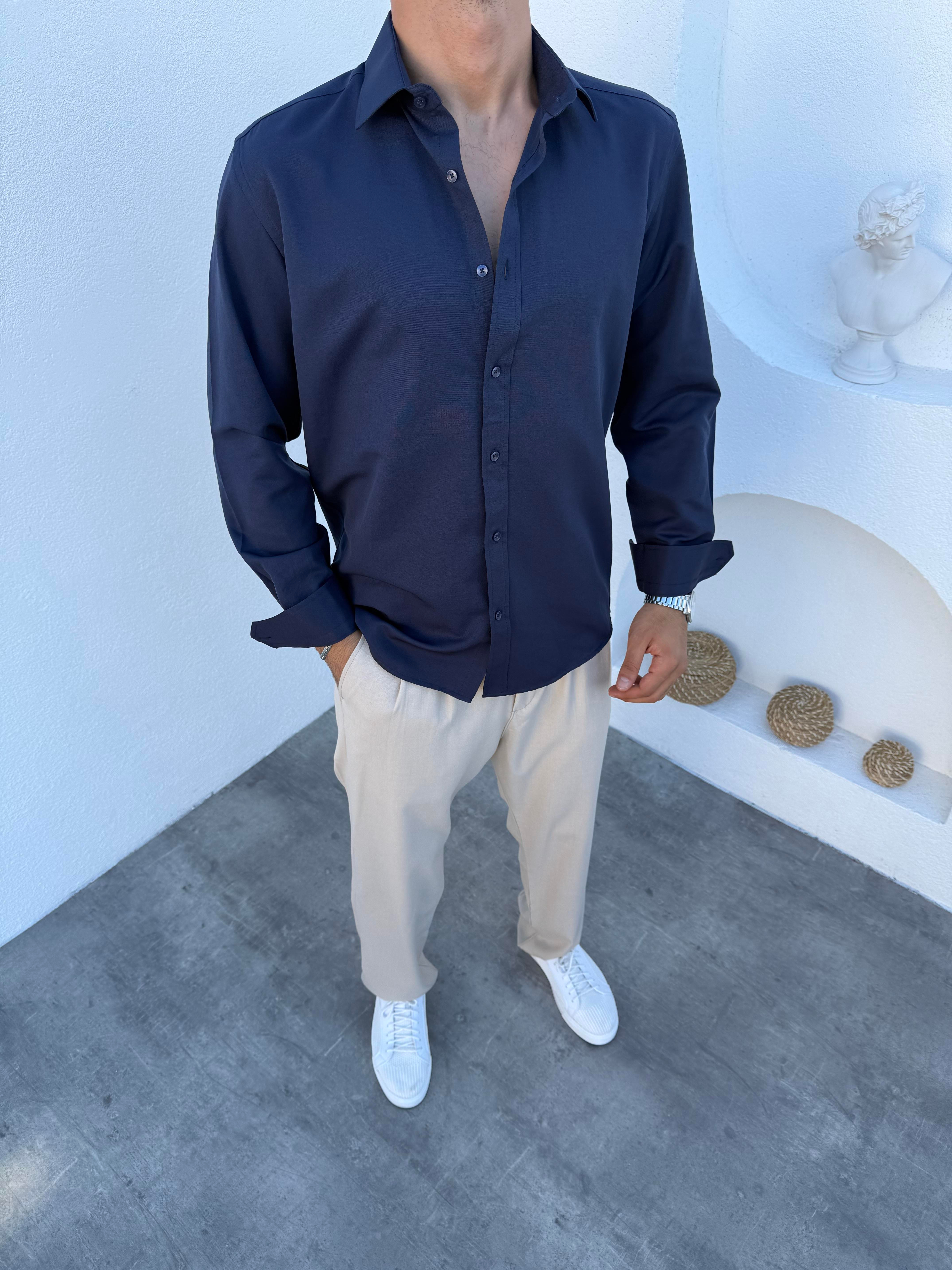 Oxford Pamuklu İtalyan Yaka Standart Kalıp Gömlek Lacivert (FM51838)