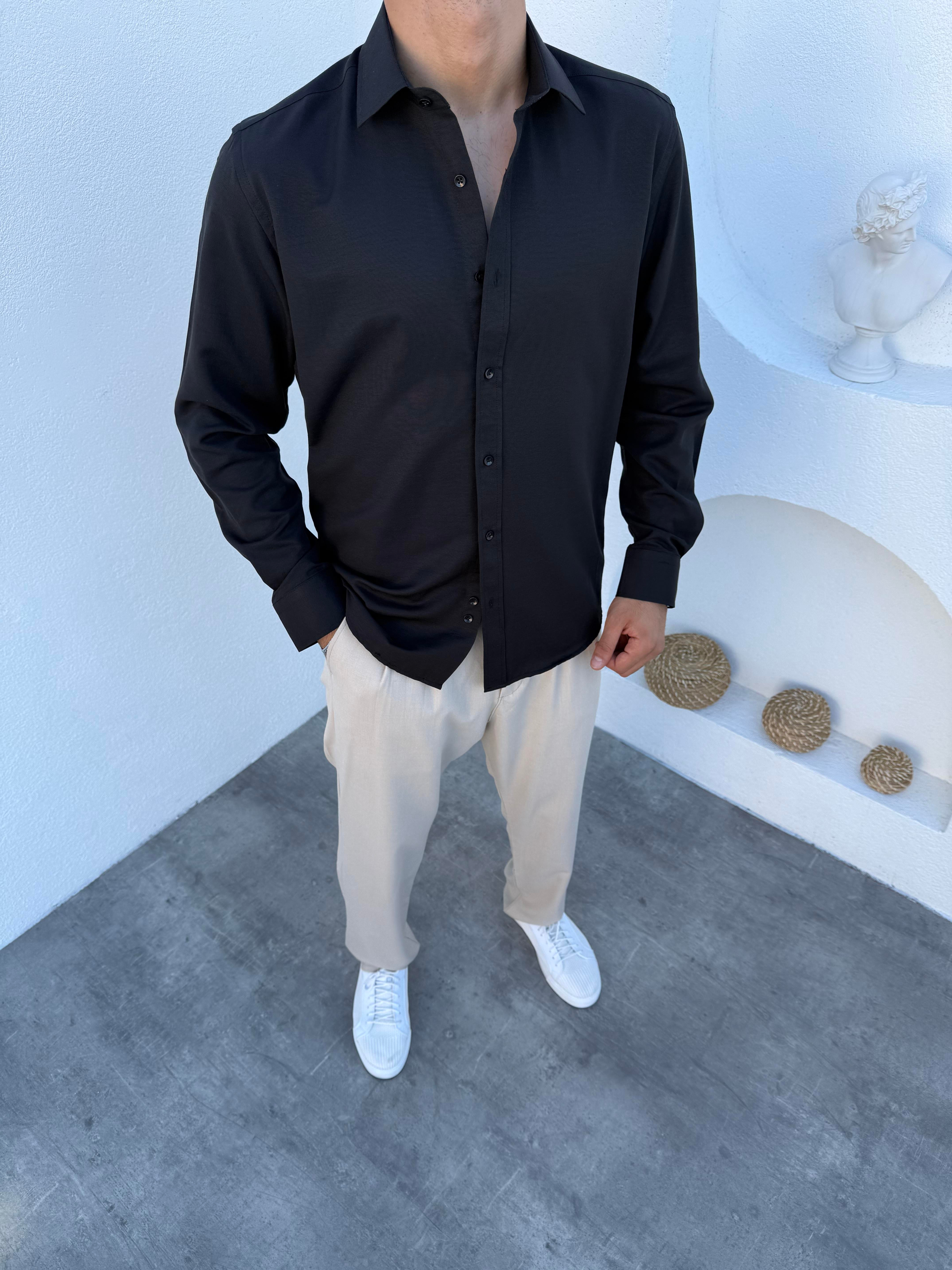Oxford Pamuklu İtalyan Yaka Gömlek Siyah