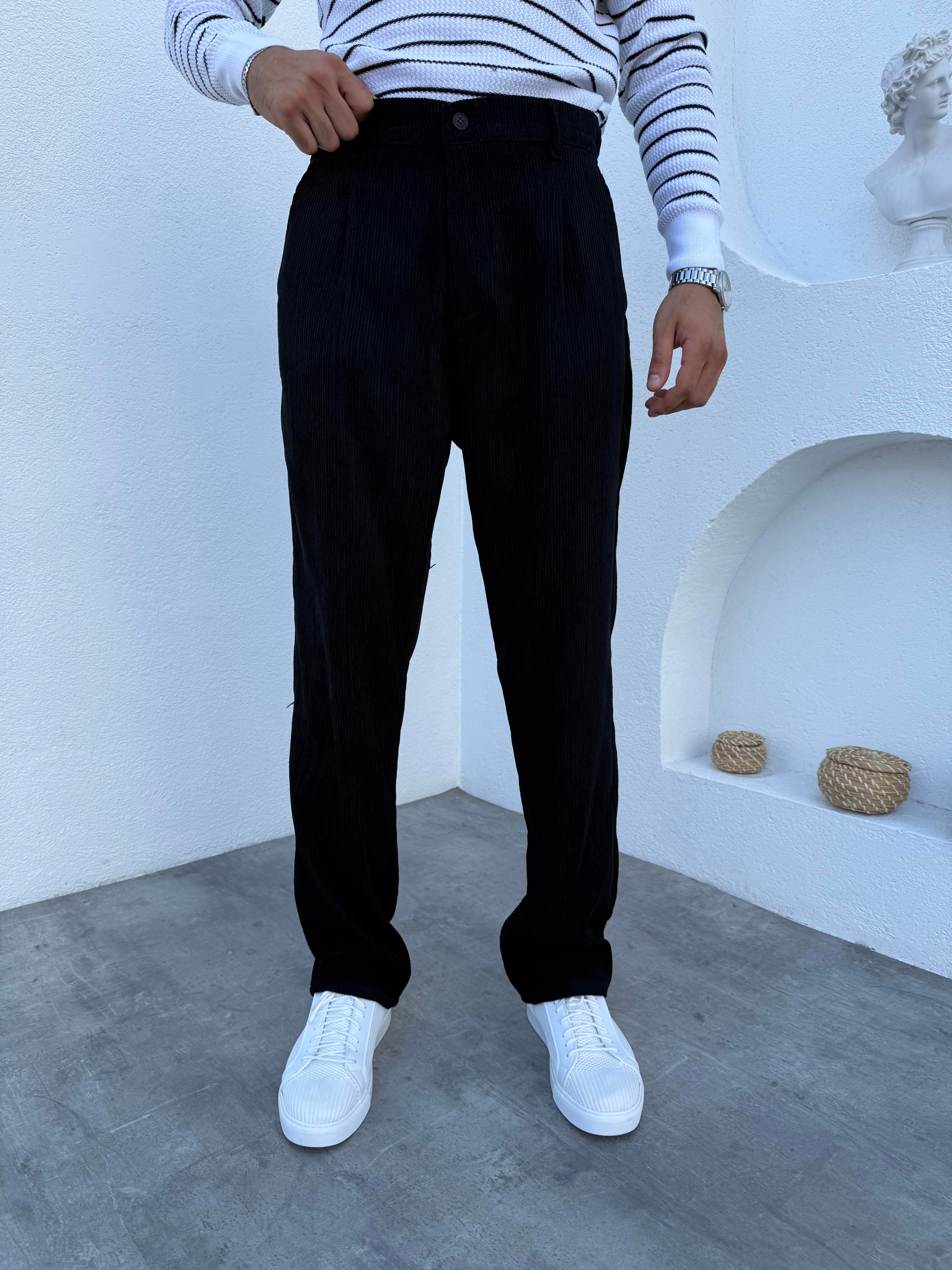 Pileli Kadife Baggy Pantolon Siyah (FM22221)