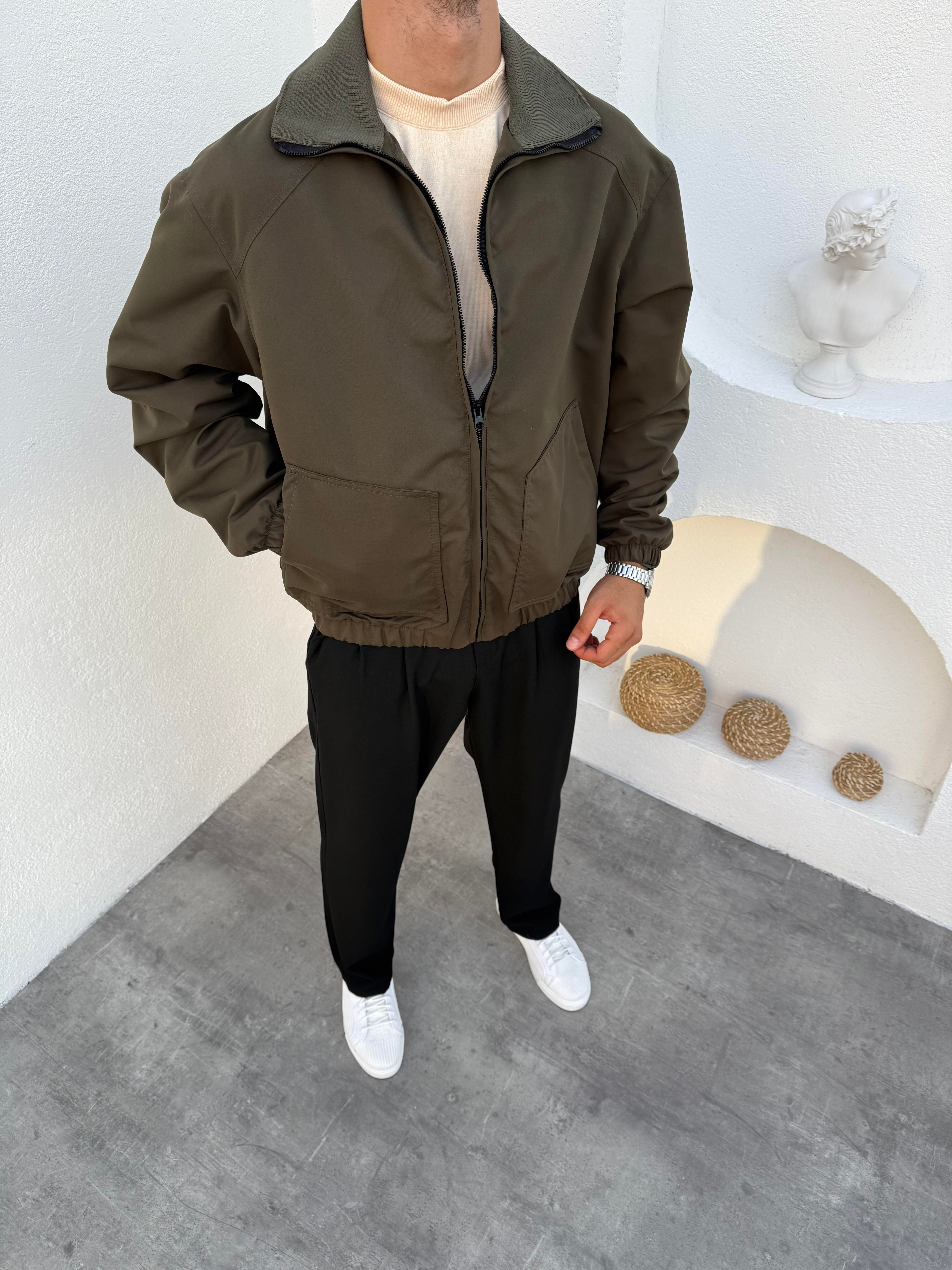 Ribana Yaka Mevsimlik Ceket Haki (FM41936)