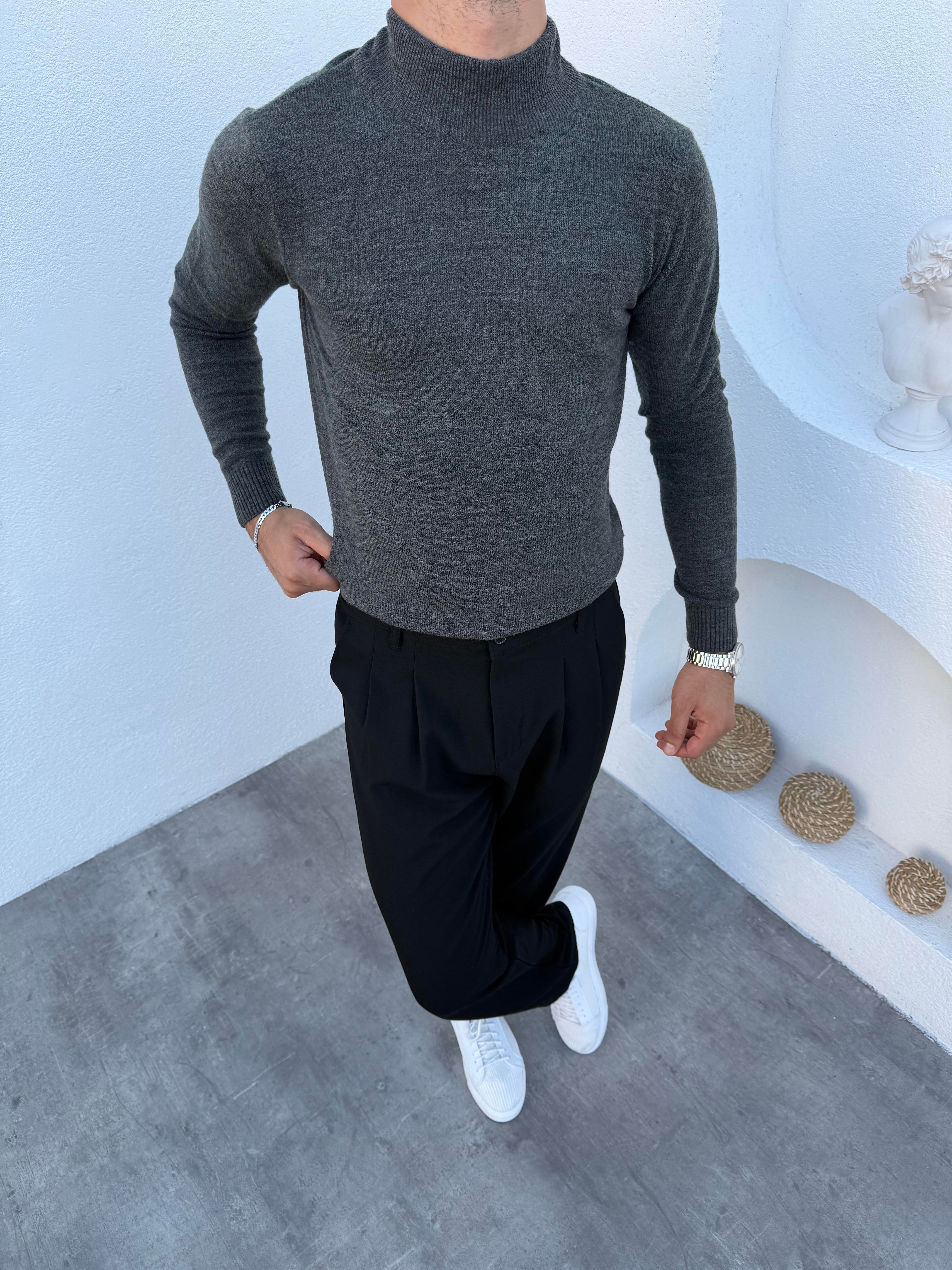 Yarım Balıkçı Likralı Triko Kazak Antrasit