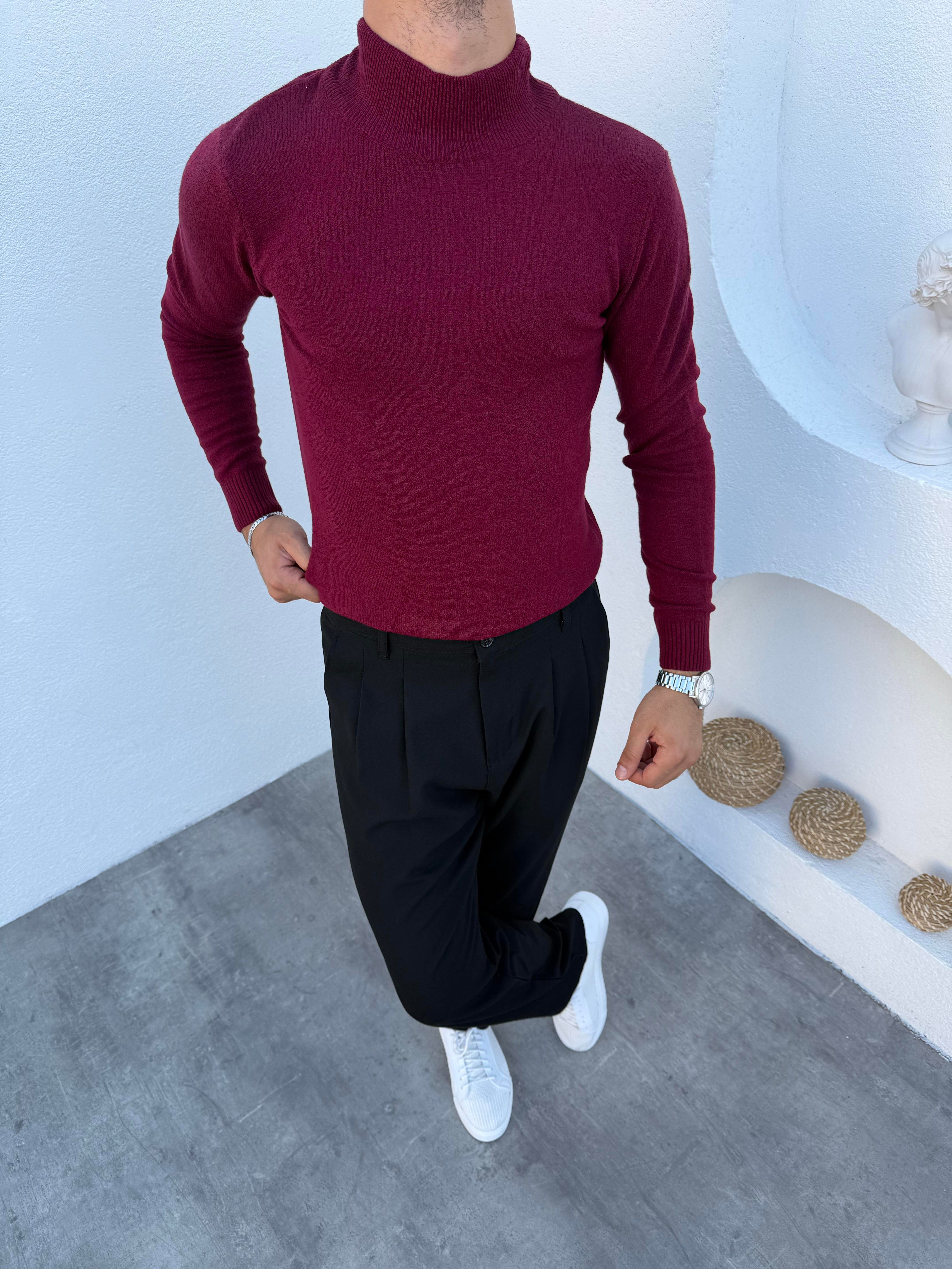 Yarım Balıkçı Likralı Triko Kazak Bordo